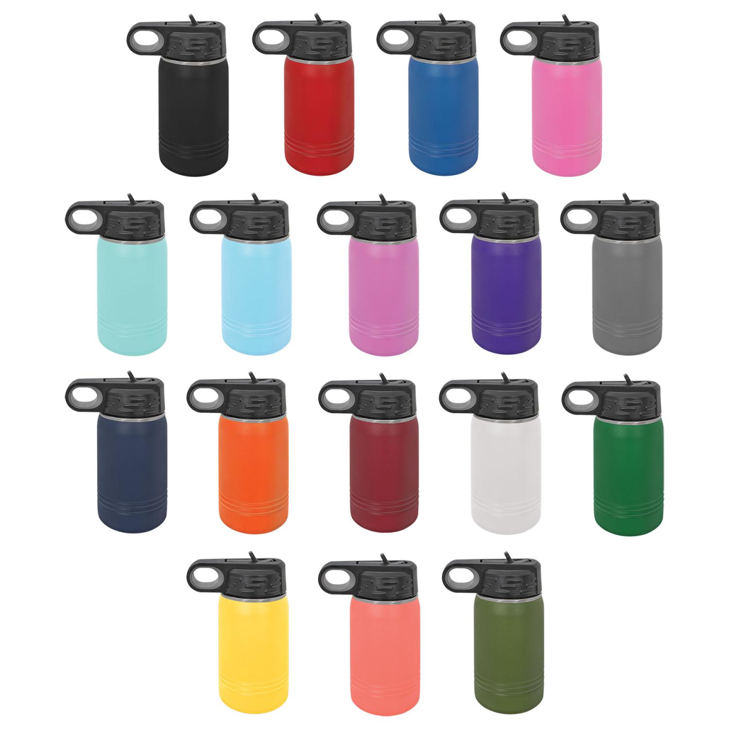 Our short and sweet 12 ounce Polar Camel Metal Water Bottles will keep your cold drinks icy, or your hot drinks at the perfect temperature for long periods of time. The most petite of our water bottles, these are lightweight and perfect for smaller bags or younger kids. Made from double-walled vacuum insulated stainless steel they are ideal for the gym, an office desk, or even a camping trip, making staying hydrated convenient and fun. These bottles come decorated with silver laser etching. 2.875″ L x 6.75″ H