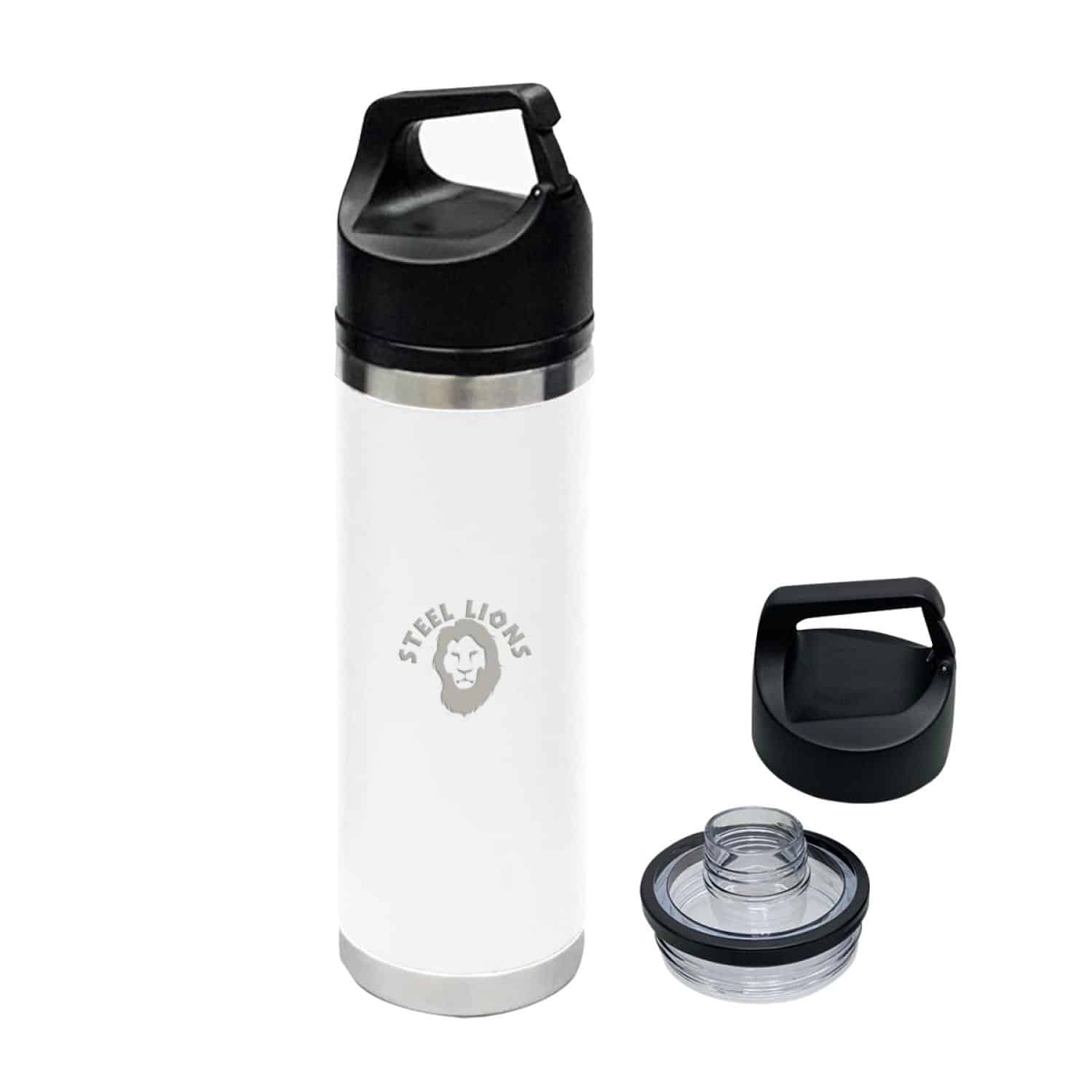 Stainless Steel Outer And Inner Double Wall Construction For Insulation Of Hot Or Cold Liquids Wide Mouth Opening AS Inner Lid And Spill-Resistant Outer Cap With Easy Carry Handle. Complies with Prop 65. 10″ H