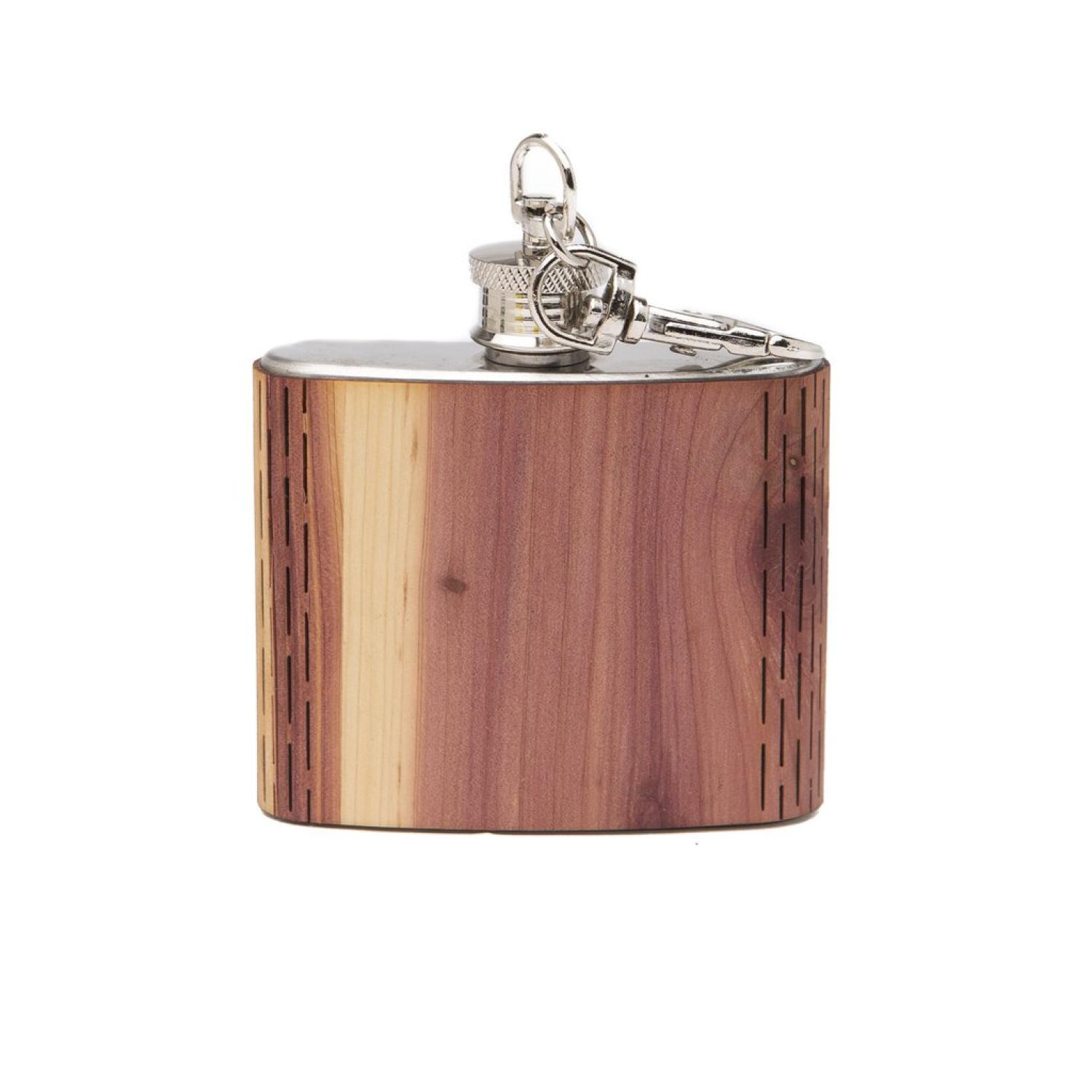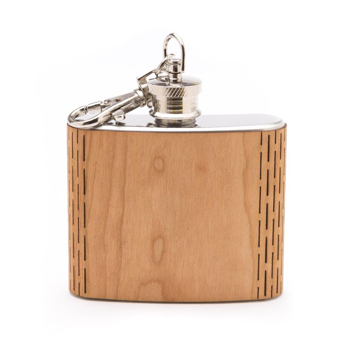 2 oz. stainless steel wooden hip flask covered in real wood. Our 2 oz. stainless steel flasks are wrapped in hand cut, high-quality, 100% real wood locally sourced right here in the United States for superior finish, quality and durability. This wooden flask with a sturdy stainless steel body is a simple and a cost friendly gift. Handcrafted in Hidden Springs, ID. Laser engraving and wood inlays available. Individual personalization available; see customization options. Complies with Prop 65. 2.8″ W x 3.5″ H x 1″ Thick