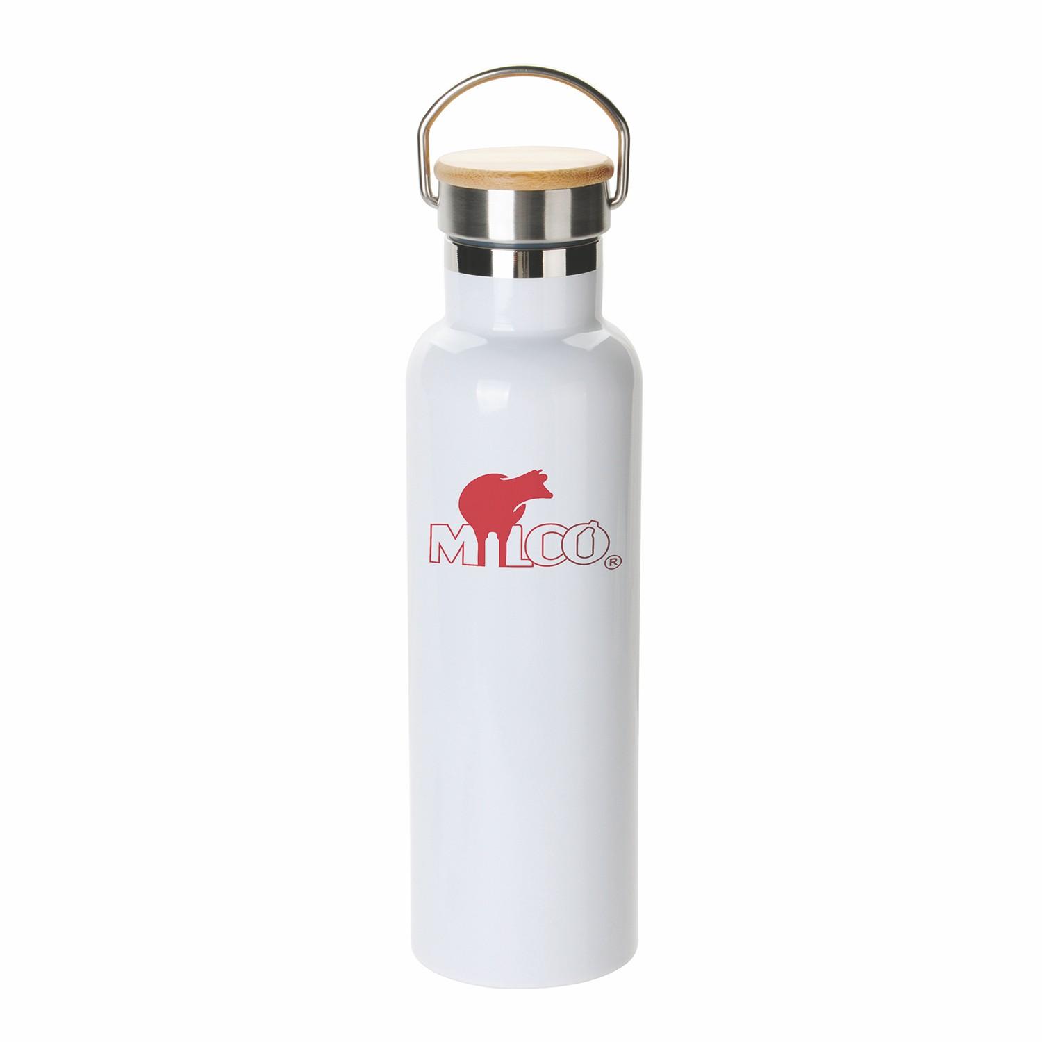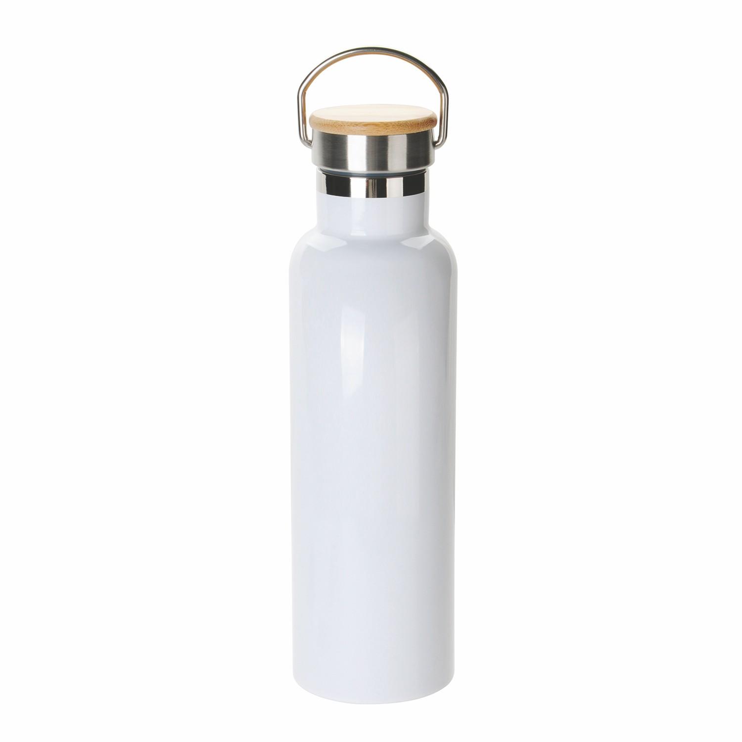 304 Stainless steel inside and 201 inside for the 20 oz double wall vacuum water bottle with stylish bamboo top lid and carrying ring. Great for keeping drinks cold and hot for long periods of time. Available in glossy black, and glossy white. 2.875″ W x 9.625″ H x 2.875″ D