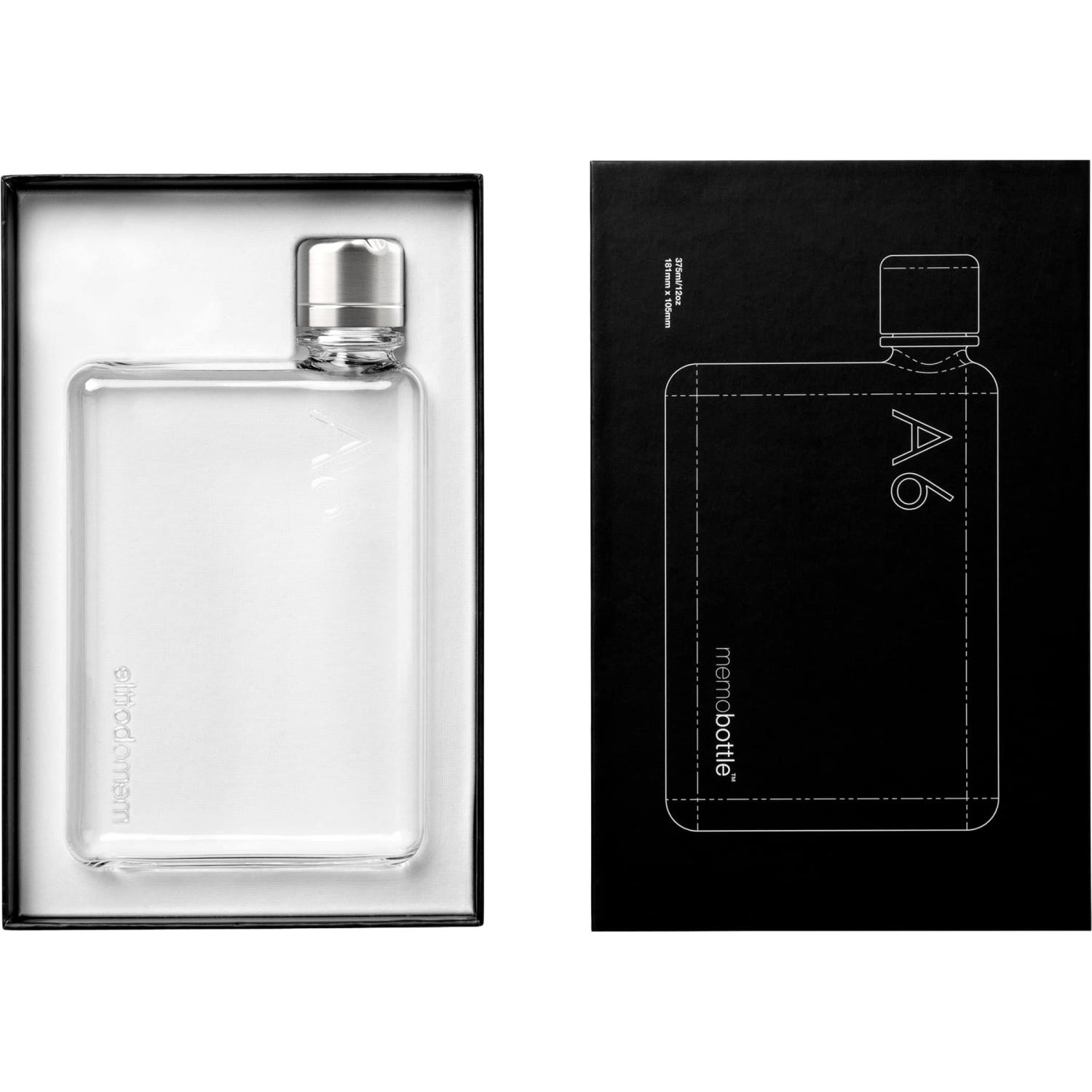 The A6 memobottleâ„¢ is the perfect daily companion, ?easily fitting in your pocket, handbag or backpack. Thanks to its compact size, and paper-inspired design, ?the A6 memobottleâ„¢ will keep you hydrated everywhere and anywhere you go hand wash. 1.20″ D x 4.40″ W x 7.70″ H