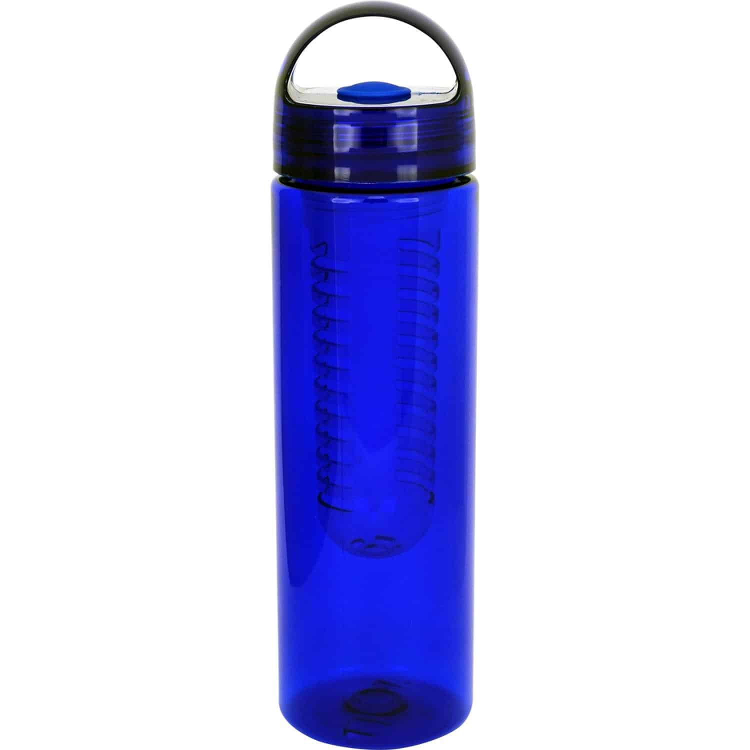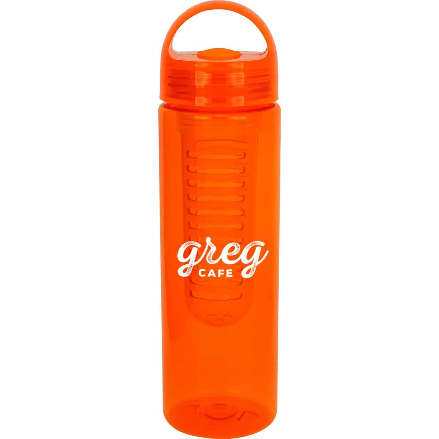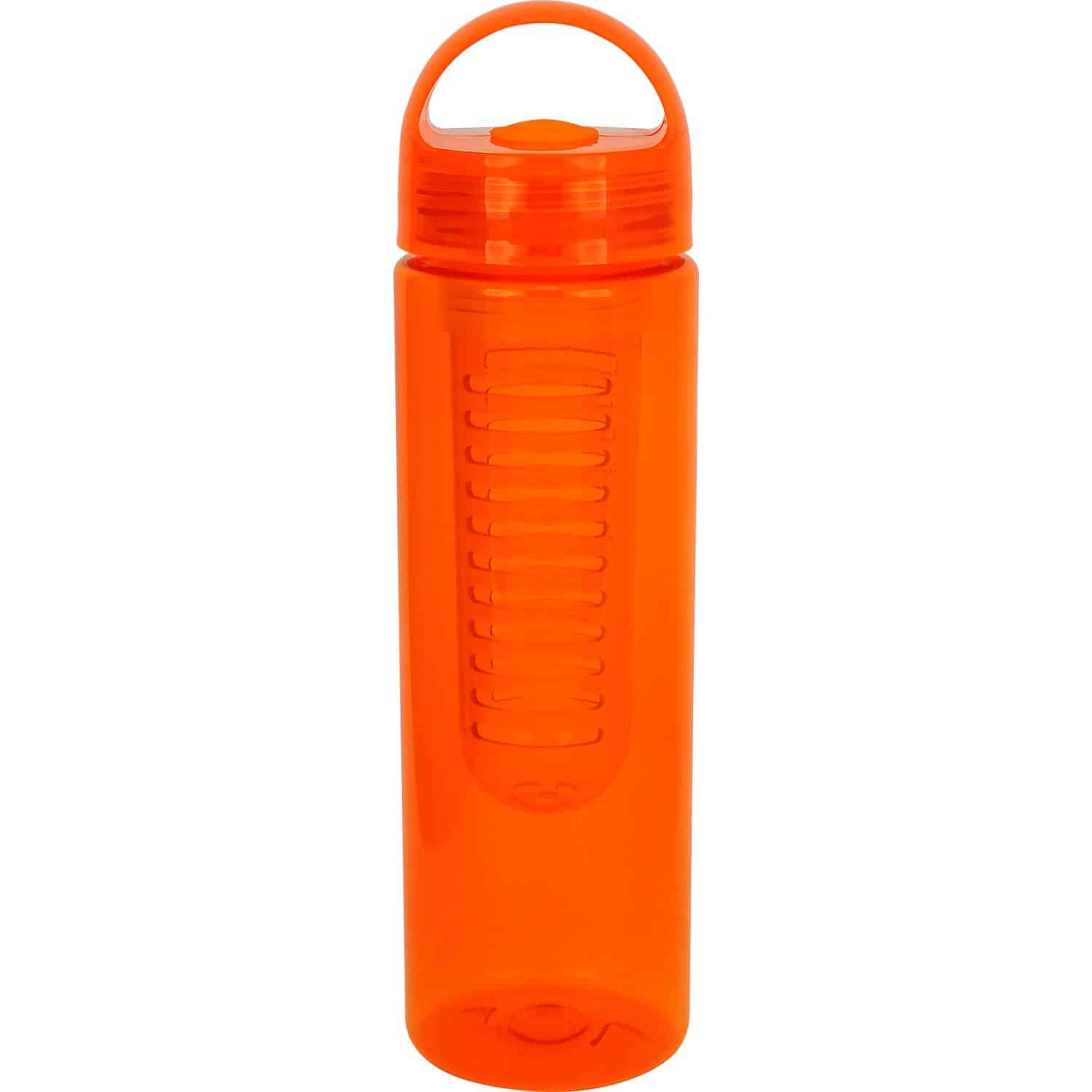 Stay hydrated in style with our 24 oz. vibrant water bottle, complete with a detachable infuser for added flavor. The lid features a silicone gasket and a rounded arch handle for convenient carrying. This bottle is BPA free, ensuring your drinks stay safe and fresh. Please note that this bottle is not suitable for dishwasher or microwave use. Complies with Prop 65. 2.75″ D x 9.75″ H