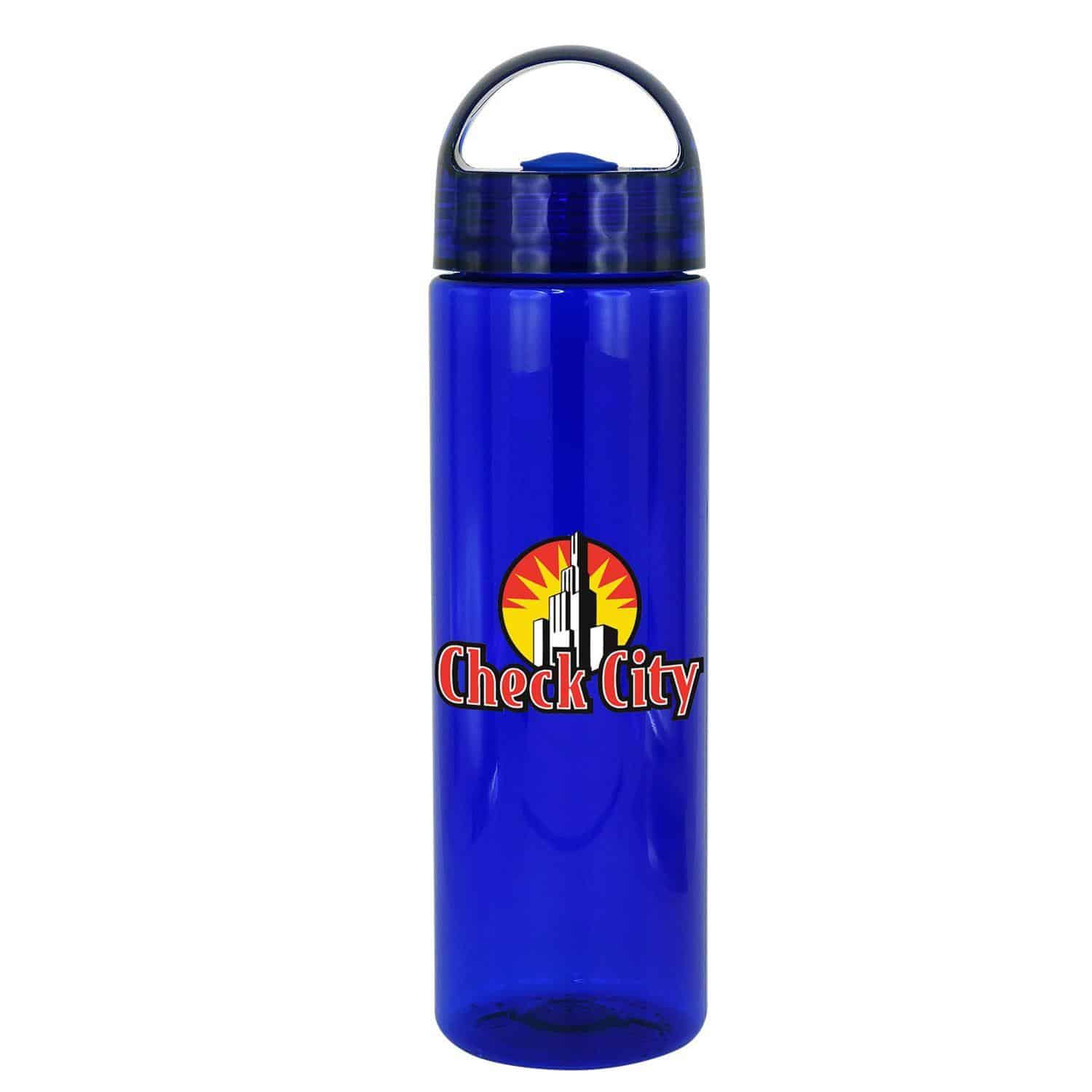 Introducing our vibrant and eco-friendly 24 oz. refillable water bottle! This stylish bottle features a convenient rounded arch handle and a secure silicone gasket on the lid. Rest assured, this BPA-free bottle is designed with your health and safety in mind. Please note that this bottle is not suitable for dishwasher or microwave use. Stay hydrated in style with our colorful and practical water bottle! Complies with Prop 65. 2.75″ D x 9.75″ H