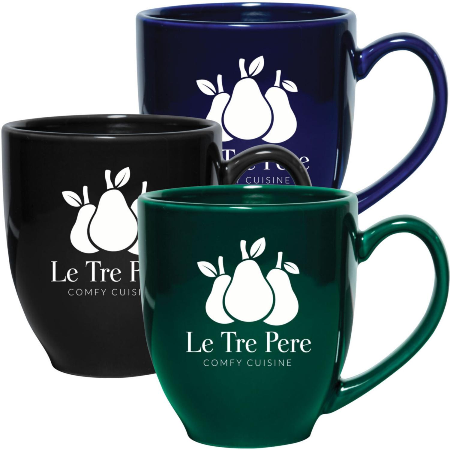 Order your personalized Bistro Mug and benefit from a modern, stylistic design! Your customized Bistro Mug includes a large grip handle for comfortable use. Large, 14 oz capacity, custom ceramic Bistro Mug. Bistro Mugs features durable, ceramic construction. For best results, we recommend handwashing only. Complies with Prop 65. 5.25″ W x 4.125″ H