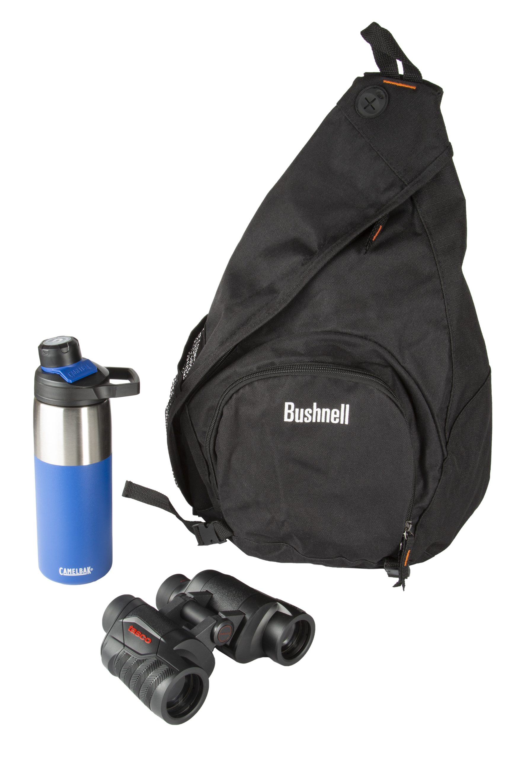 This all-in-one kit is perfect for sporting or musical events. It includes a 7×35 Tasco Focus Free binocular with fully coated optics for clear viewing, a Camelbak 20 oz blue Chute vacuum insulated bottle to keep drinks hot or cold, and a backpack to conveniently carry everything. Also comes with a binocular case and strap for easy transport. 9.25″ L x 5.5″ W x 8.5″ H