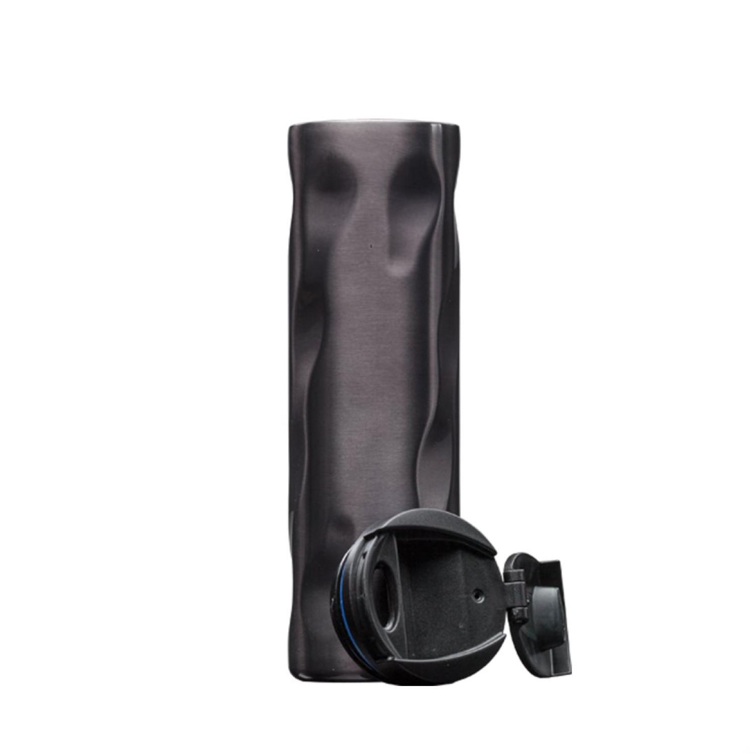 Double wall stainless steel tumbler- Screw on, spill-proof flip lid- Stylish metallic gunmetal finish- Color accent silicone ring. 2.625″ W x 9.375″ H