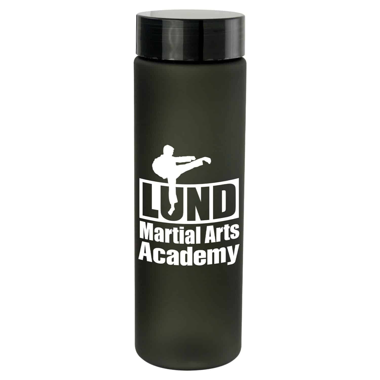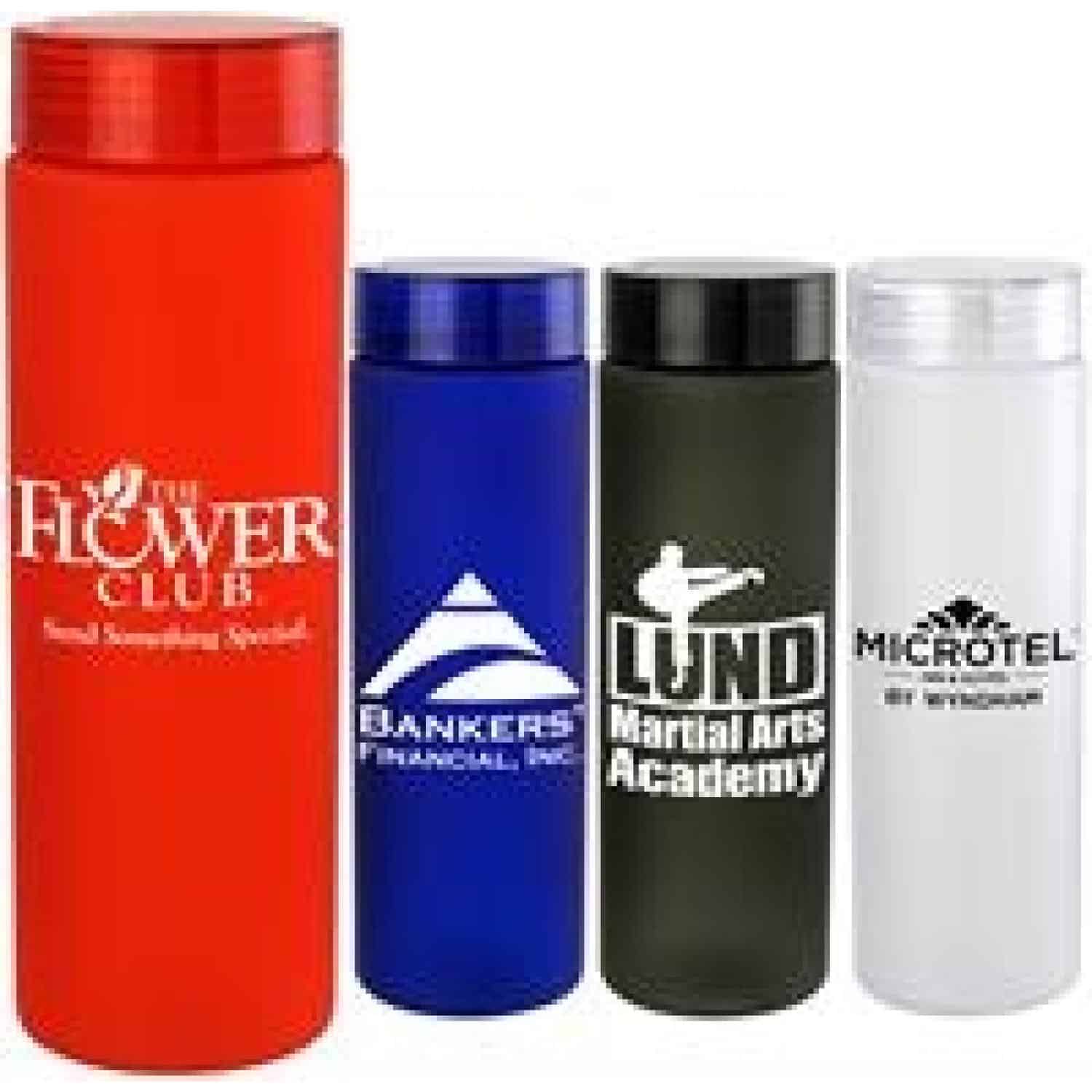 Stay hydrated on-the-go with our sleek 24 oz. refillable water bottle, featuring a rubberized exterior for a comfortable grip. The clear view flat top lid ensures easy access to your favorite beverage. Rest assured knowing that our bottle is BPA free, making it a safe choice for your daily hydration needs. Please note that this bottle is not suitable for dishwasher or microwave use, ensuring its durability and longevity for everyday use. Complies with FDA, Prop 65. 2.75″ D x 7.5″ H