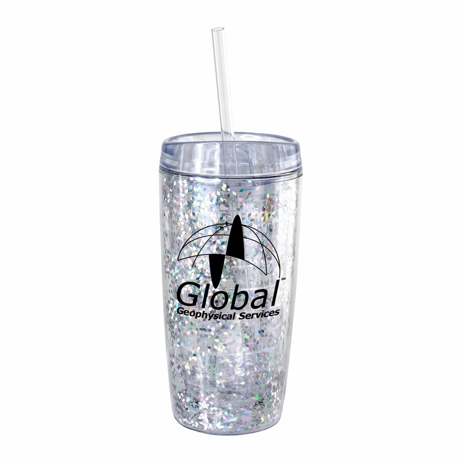 Elevate your beverage experience with our 16oz. insulated tumbler, featuring a fun confetti design sealed between the walls for a unique and eye-catching look. This tumbler comes complete with a matching lid and straw, making it not only stylish but also convenient for on-the-go use. While it is not suitable for use in the dishwasher or microwave, rest assured that this tumbler is BPA Free, ensuring your drinks are safe and free from harmful chemicals. Add a touch of flair to your daily routine with this trendy and practical tumbler. Complies with FDA, Prop 65. 3.5″ D x 6″ H