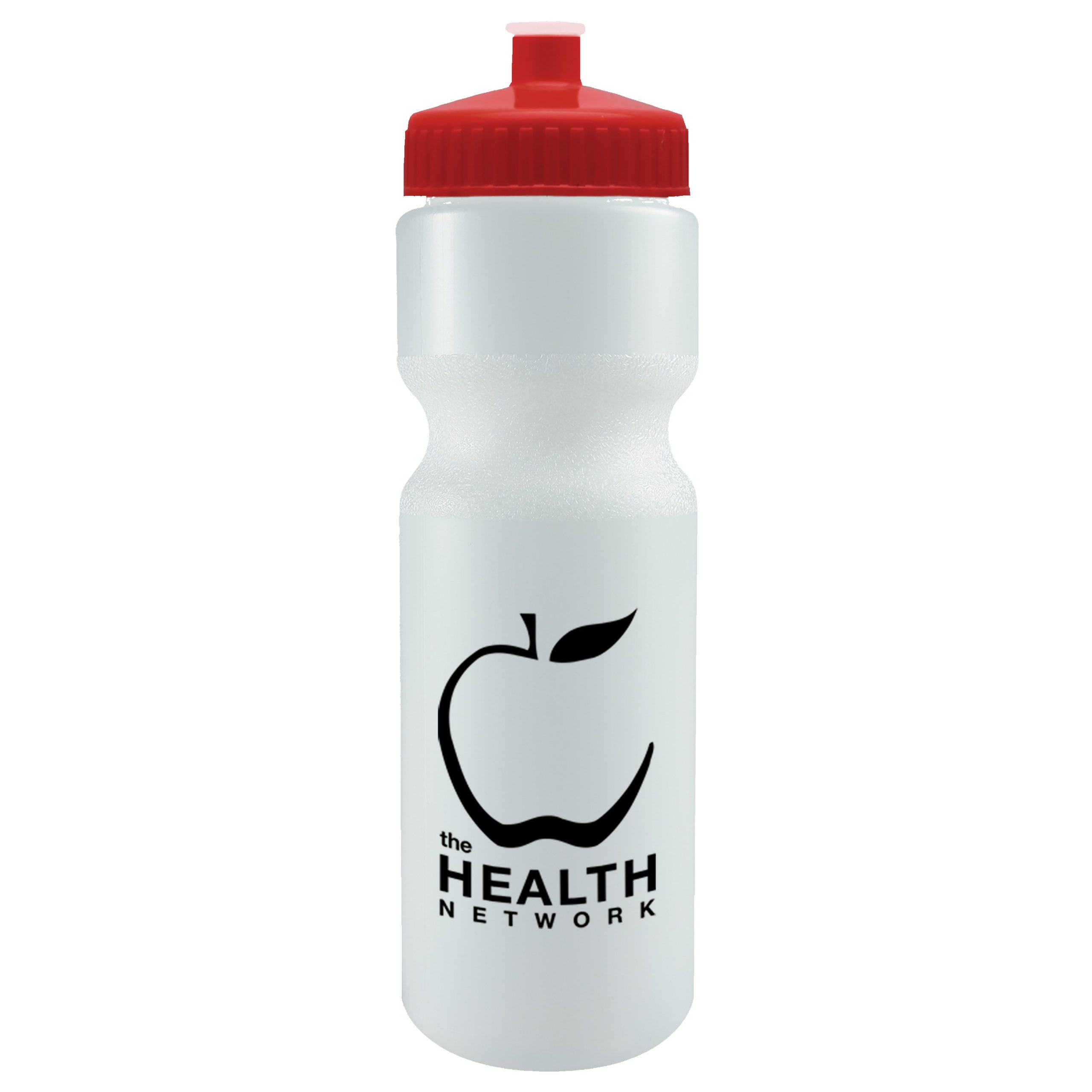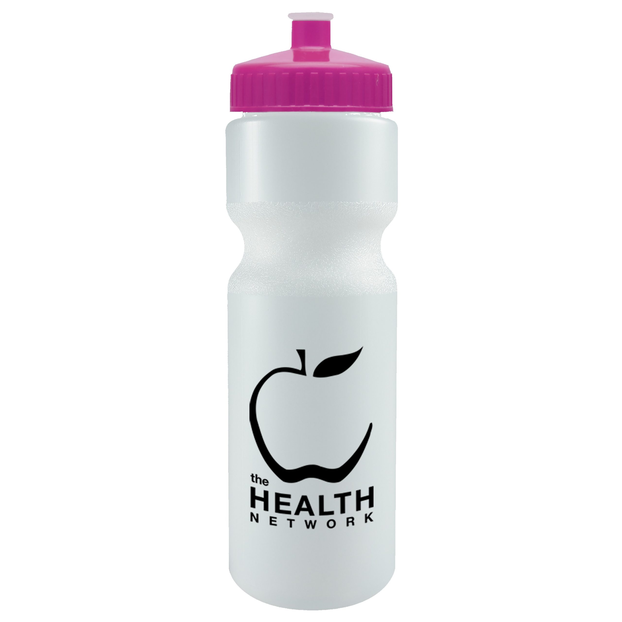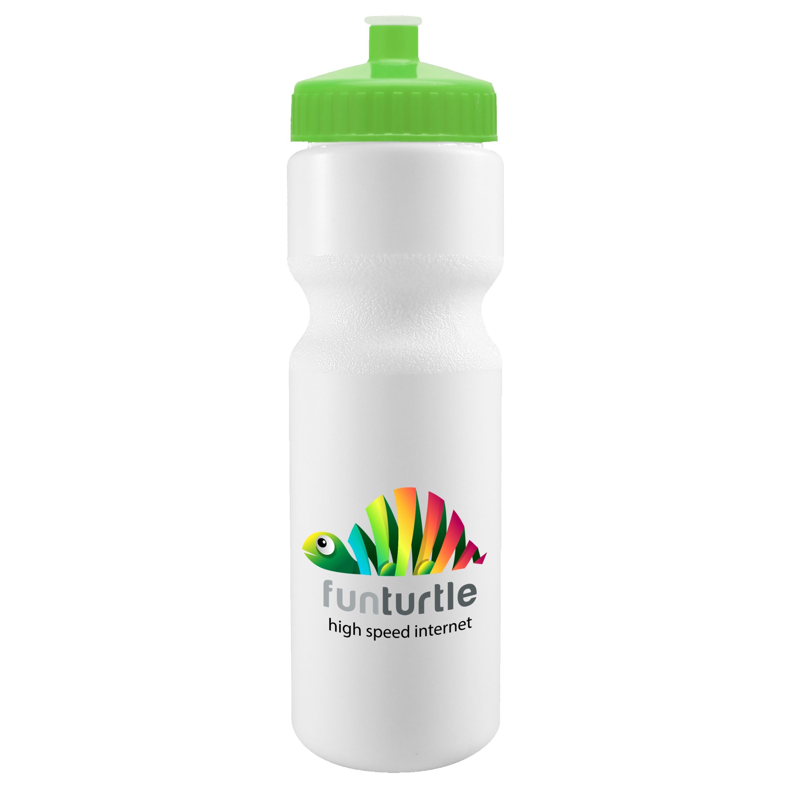 This classic 28 oz. sport bottle features a push-pull lid and a contoured, textured design for a secure grip. It fits standard bike cages and offers mix-and-match bottle and lid colors for a personalized look. Up to 40% of the bottle is made from post-industrial recycled HDPE. Complies with ANSI, CPSIA, FDA, Prop 65. 2.875″ W x 9.75″ H x 2.875″ D