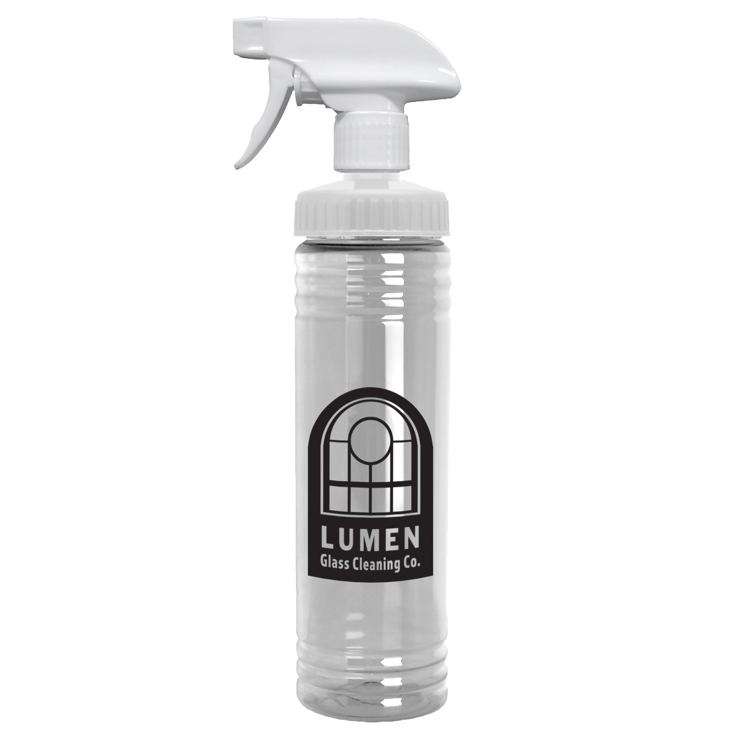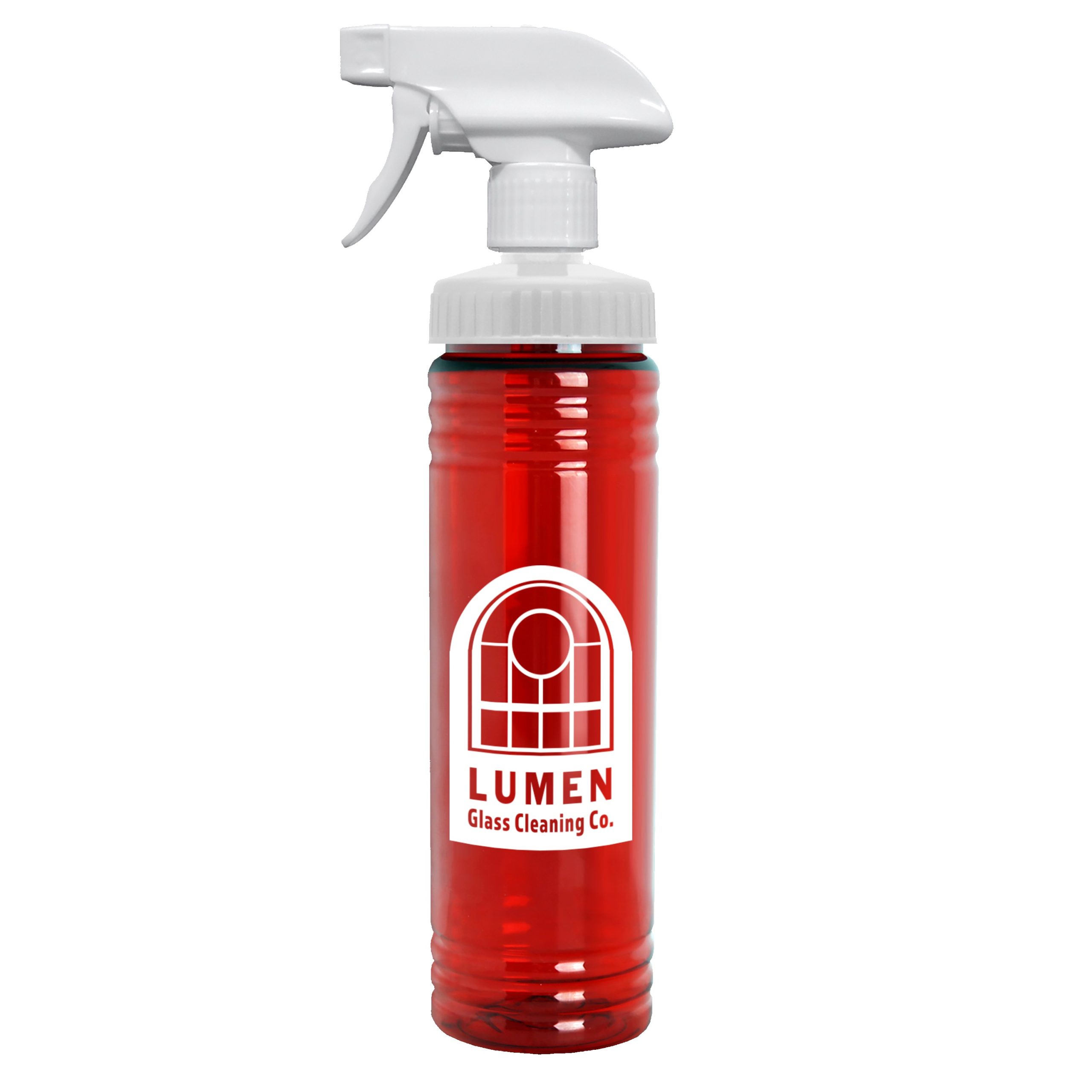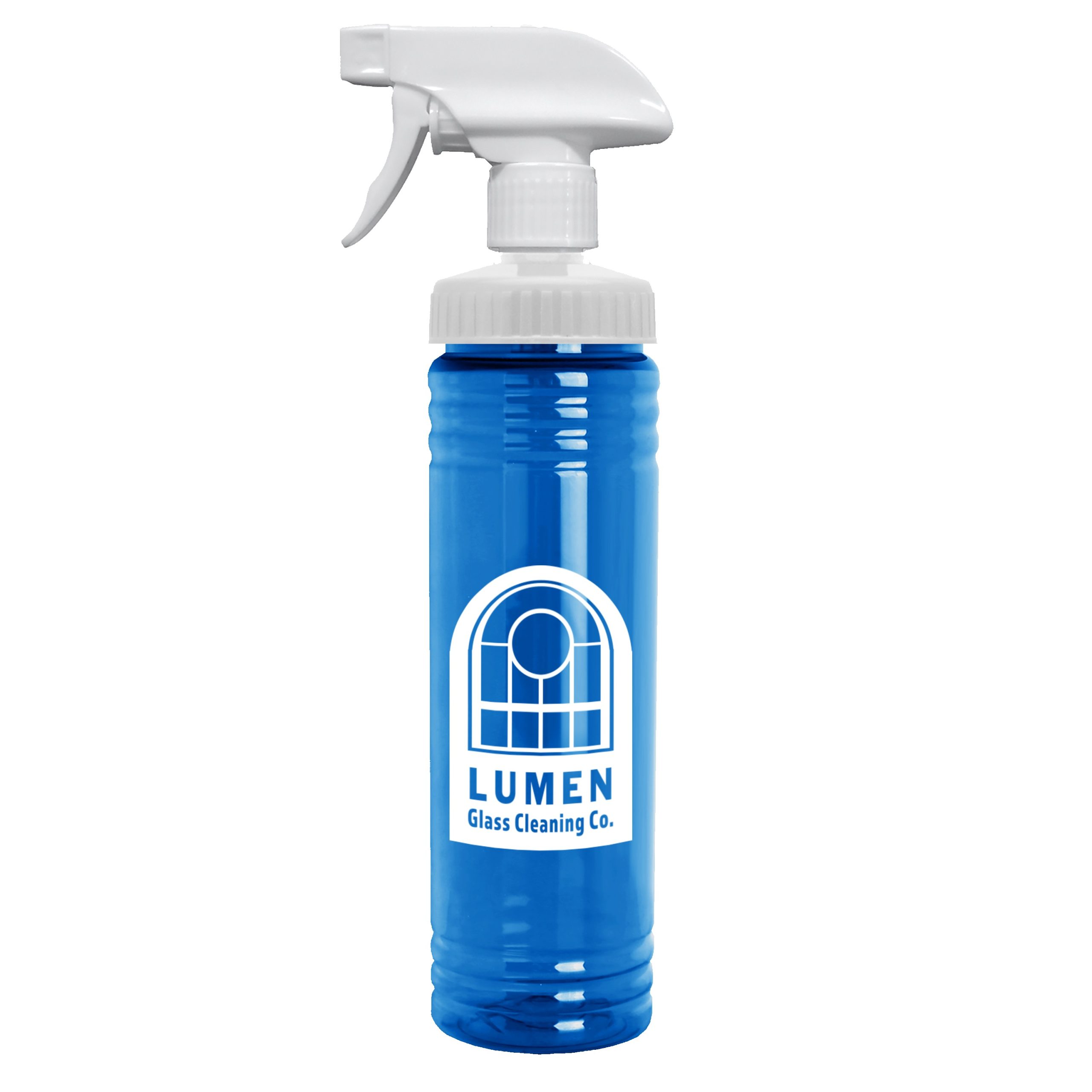 Keep your brand front and center with this 24 oz. transparent spray bottle, available in classic clear or bright translucent colors. The white trigger sprayer delivers a smooth mist, perfect for everyday household tasks. Complies with ANSI, CPSIA, FDA, Prop 65. 2.75″ W x 10.75″ H x 2.75″ D