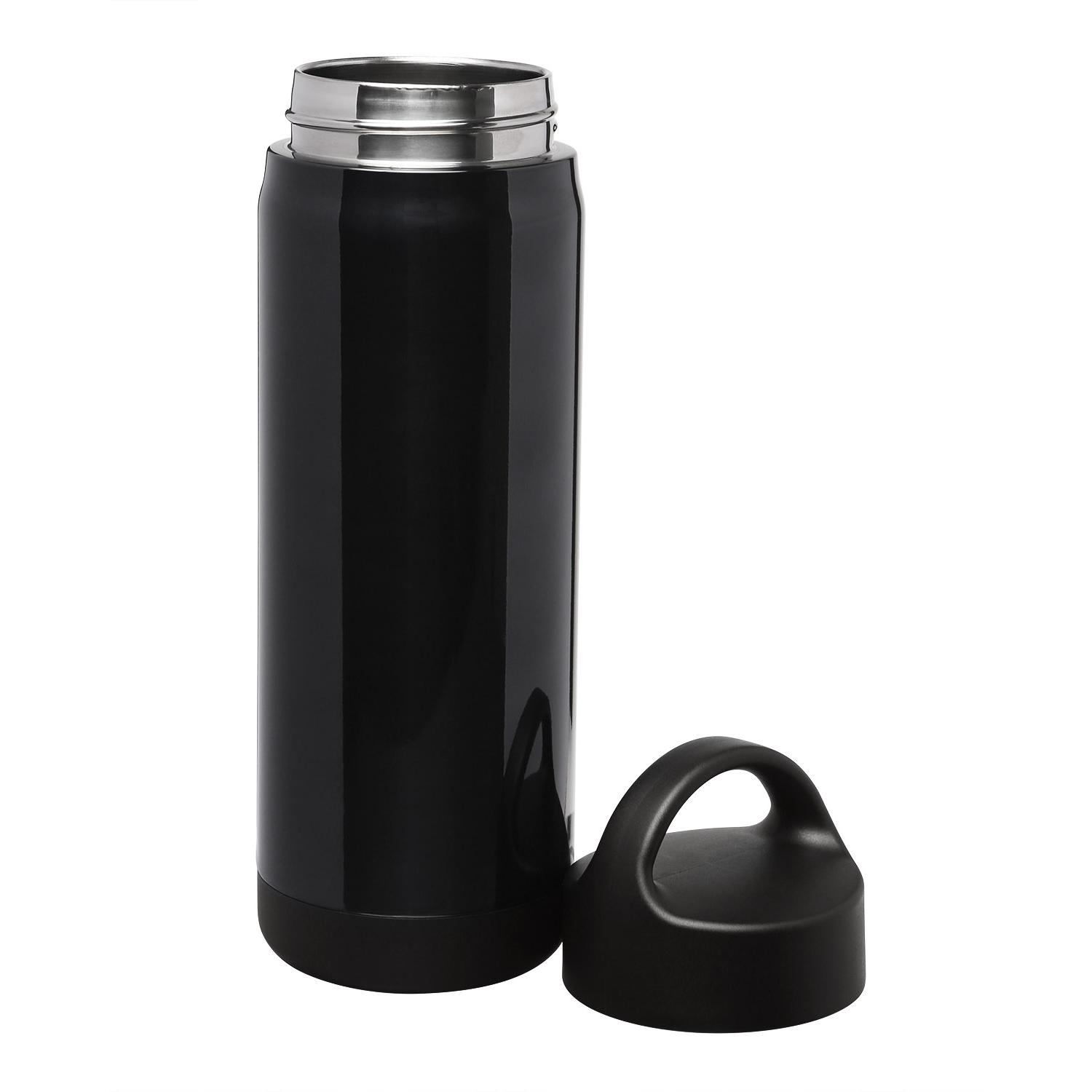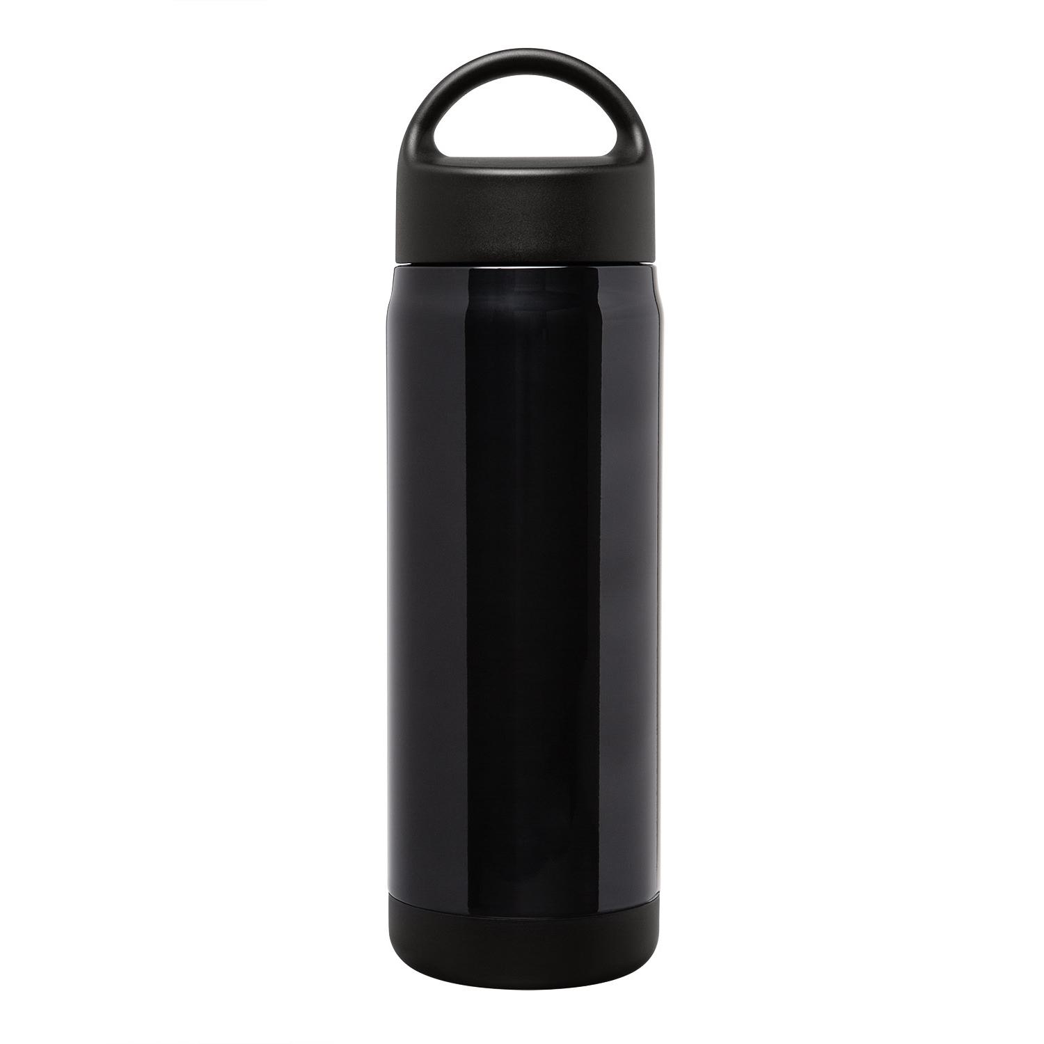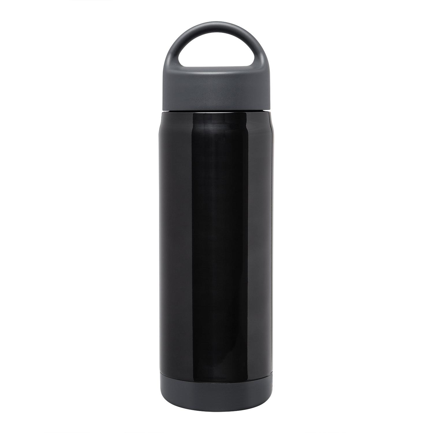 18 oz. vacuum insulated Stainless Steel water bottle with PP plastic lid. A standard bottle with a not so standard finish – this ultra-high gloss stainless steel shines with unmatched brilliance and premium style. Double-wall, vacuum insulated. PP screw-on lid with handle. Keeps liquids hot up to 5 hours and cold up to 15 hours. Hand wash only. 9.5000″ H x 2.9000″ Diameter