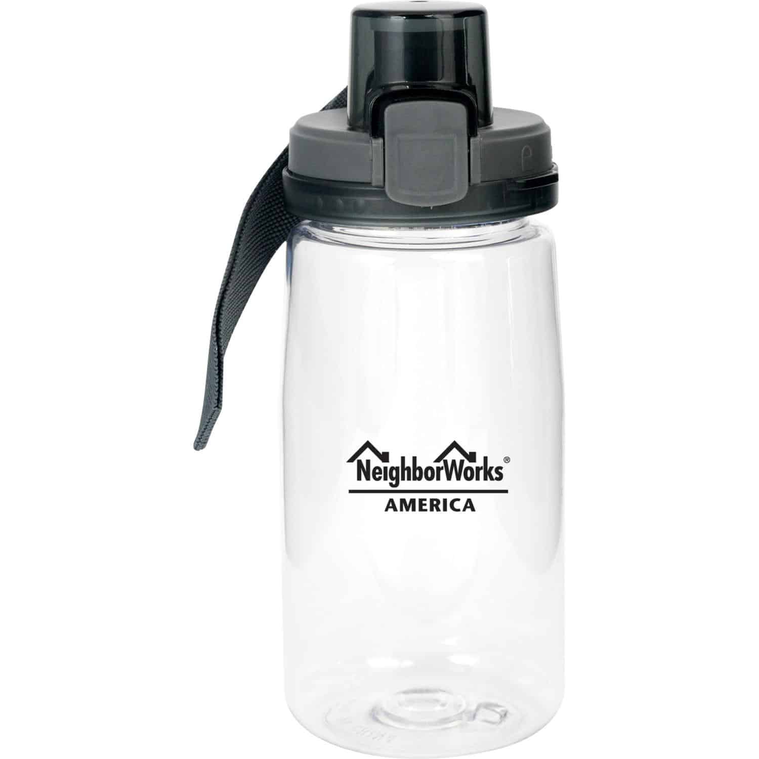 Stay hydrated in style with our eco-friendly 18 oz. refillable water bottle, crafted from recycled PET materials. The bottle features a convenient locking lid with a lanyard for on-the-go ease. Plus, rest assured that this BPA-free bottle is safe for everyday use. However, please note that this bottle is not suitable for use in the dishwasher or microwave. Make a positive impact on the environment while staying hydrated with our durable and sustainable water bottle. Complies with FDA, Prop 65. 2.75″ D x 7.5″ H