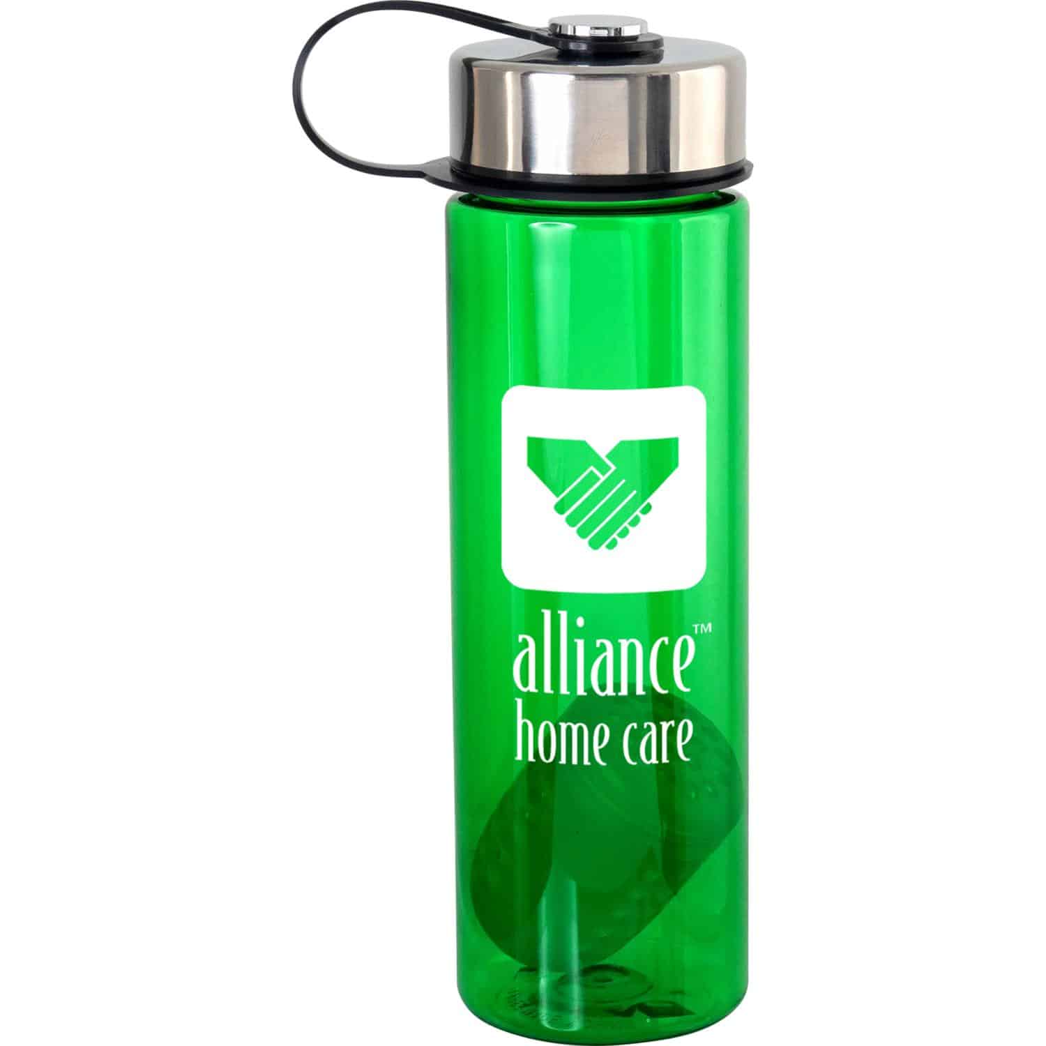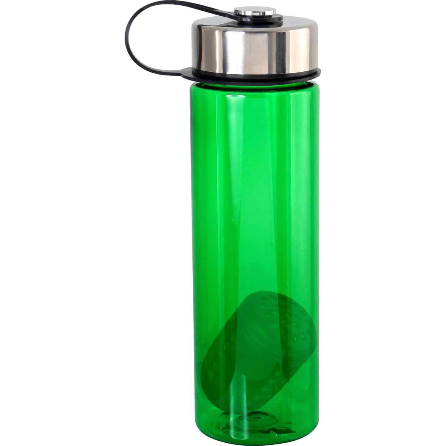Stay hydrated in style with our 24 oz. vibrant water bottle that you can refill again and again. This sleek bottle features a metal lid with an attached lanyard for easy carrying, as well as a floating infuser to add your favorite fruits for a refreshing twist. When filled with fruit, the infuser can hold 20-22 oz. of liquid. Plus, rest assured that this bottle is BPA-free for your peace of mind. Please note that this bottle is not suitable for the dishwasher or microwave. Elevate your hydration game with this chic and practical water bottle. Complies with FDA, Prop 65. 2.75″ D x 9.5″ H