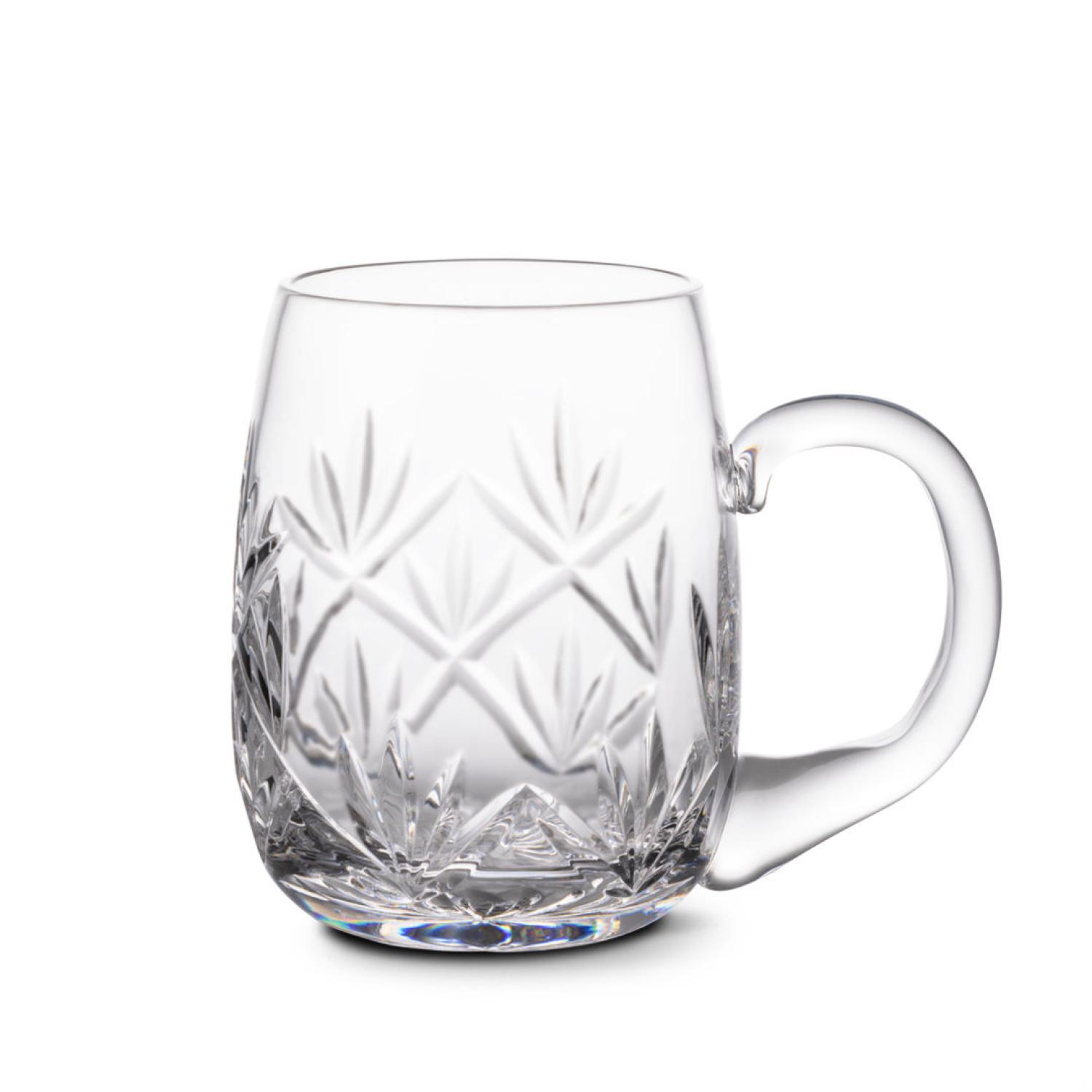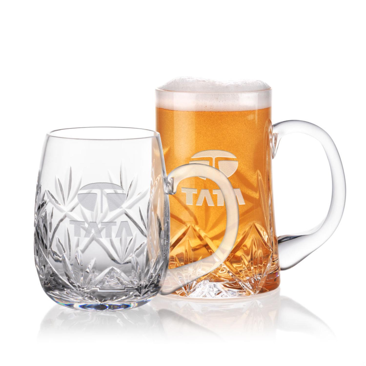 Stunning Cut Crystal Beer Stein. It beautifully captures the light and is an elegant addition to any collection. The rounded bottom of the 16oz and the flared bottom of the 21oz creates an eye catching look. Want to enhance it further? Add a deep etched artwork to this classic design to make it really eye popping.
