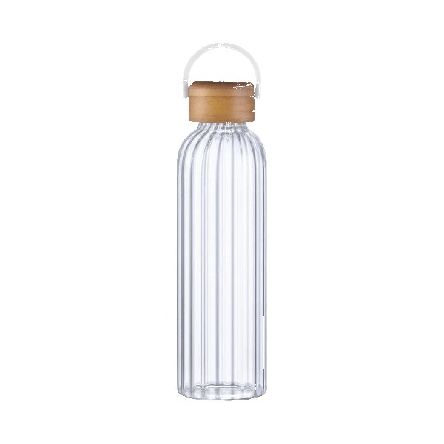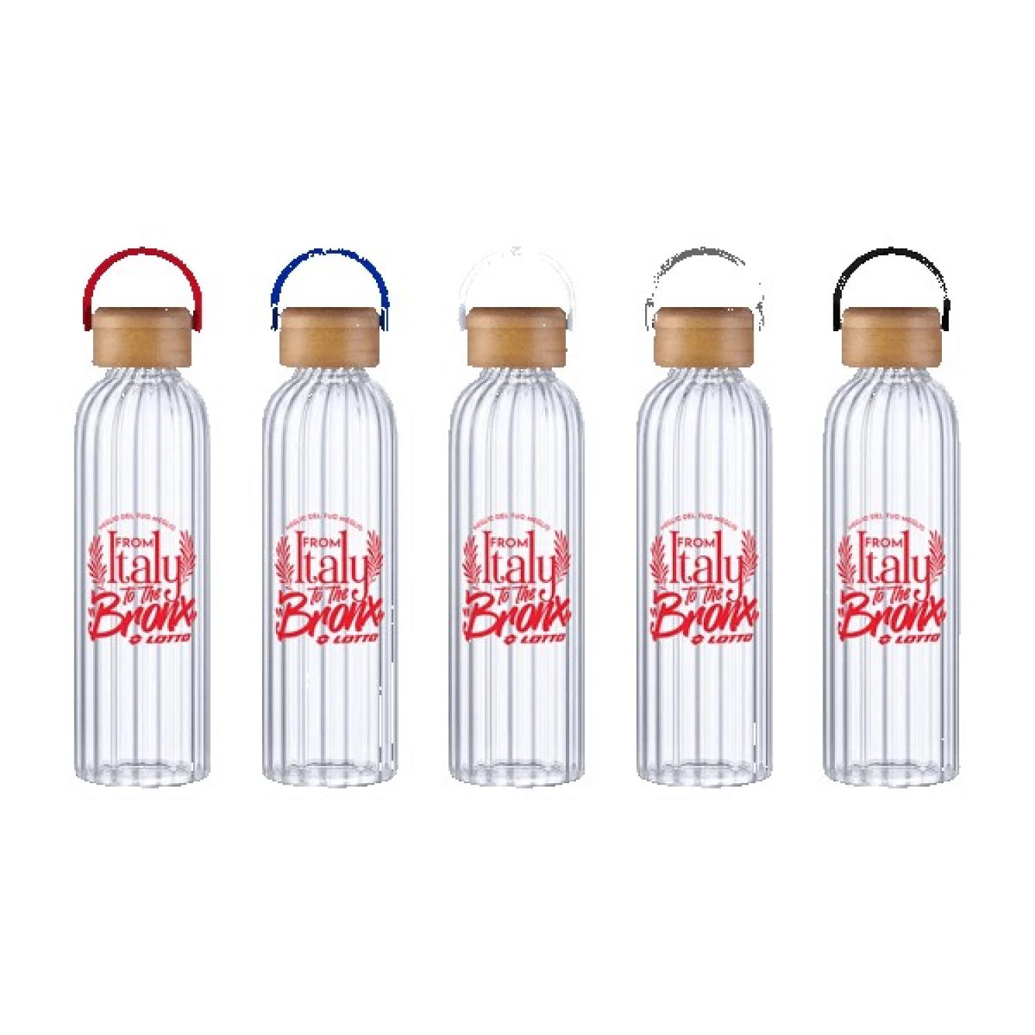 Clean lines. Cool sips. The Rawlins 21 oz Glass Bottle with Bamboo Lid is where everyday hydration meets elevated design. Crafted from thick, durable glass, it’s built for the long haul while keeping your drink front and center. The vertical ribbed pattern sits on the inside for a premium look and added grip, while the smooth outer surface stays flat and print friendly, making your logo pop.Up top, the sturdy bamboo lid features a silicone carrier loop that’s easy to grab and go. The bamboo surface is ideal for digital or laser engraving, creating a seamless match with artwork on the bottle. Finished with stylish lid color options, this bottle turns simple refreshment into a polished brand statement. 9.45″ H x 2.76″ D