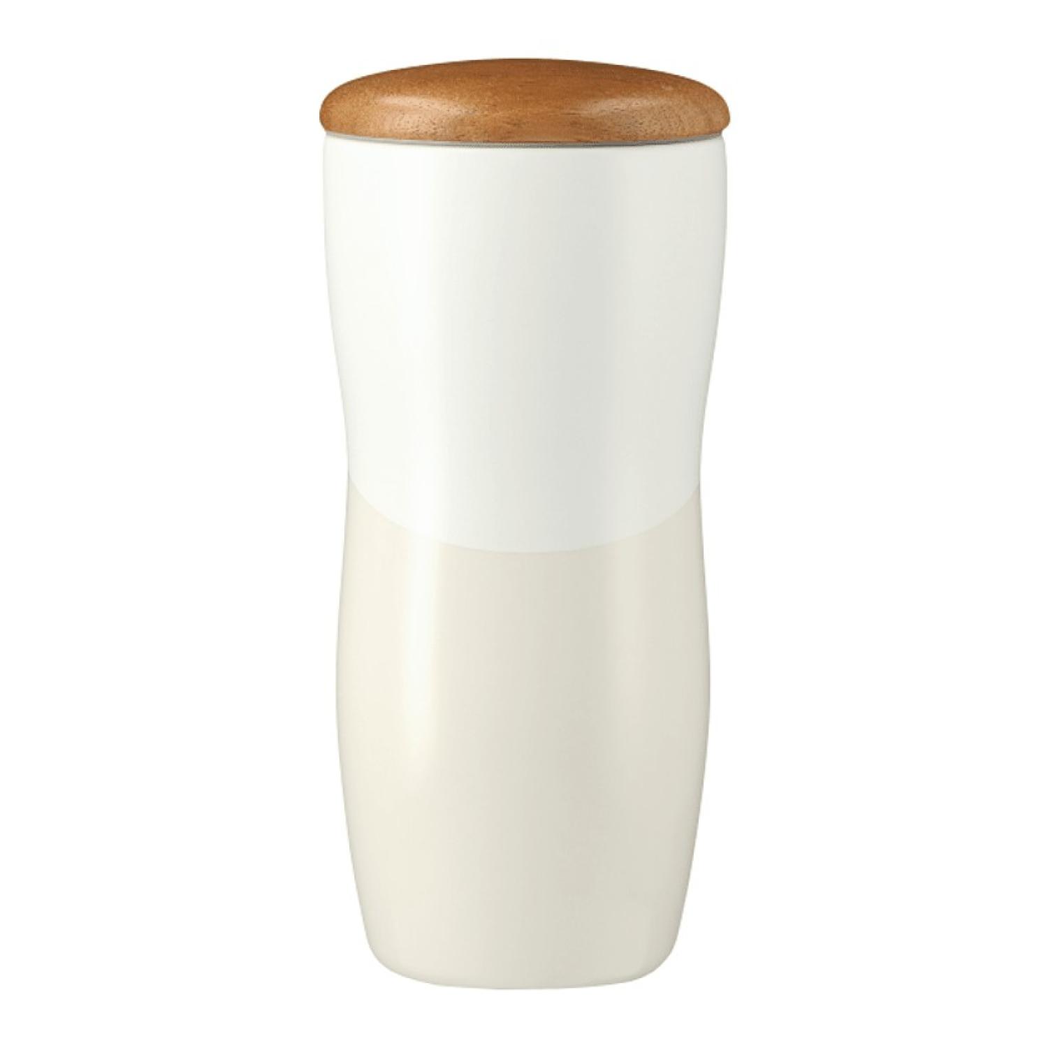 The Reno Double Wall Ceramic Tumbler with Wood Lid features a spill-resistant lid that pushes on easily to help prevent messes. Its sturdy double-wall design prevents condensation to give you a secure grip, while its compact size makes it easy to carry. The Reno Double Wall Ceramic Tumbler With Wood Lid features a contrasting matte and glossy appearance. 7.4″ H x 3.34″ W x 3.34″ D