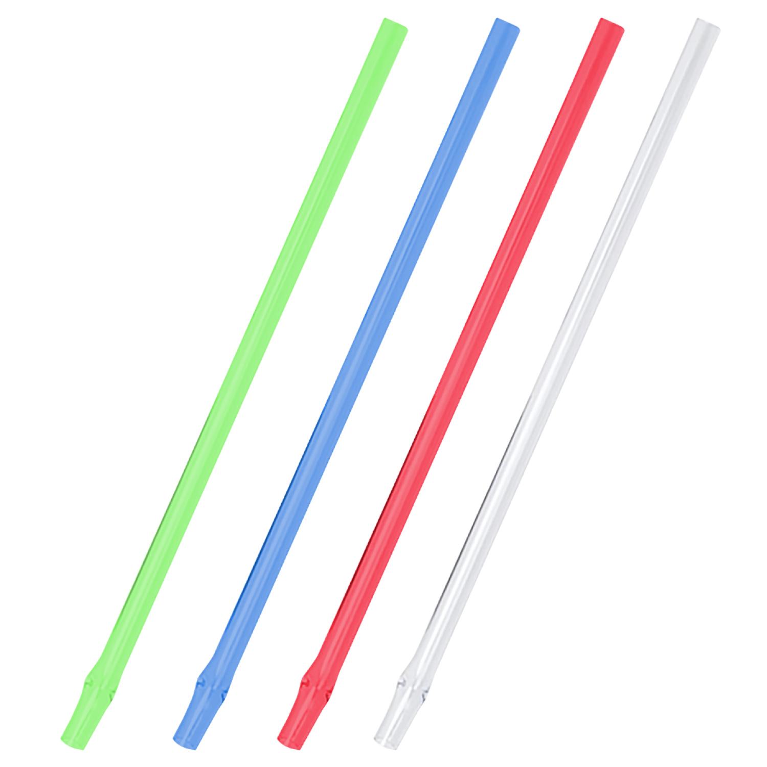 Made from PVC Optional add-on for drinkware Sold blank Straw measures 9.5″ high with 0.3125″ diameter Hand wash only Straws will ship in bulk inside the box, not assembled inside of drinkware. 0.313″ D x 0.313″ W x 9.5″ H