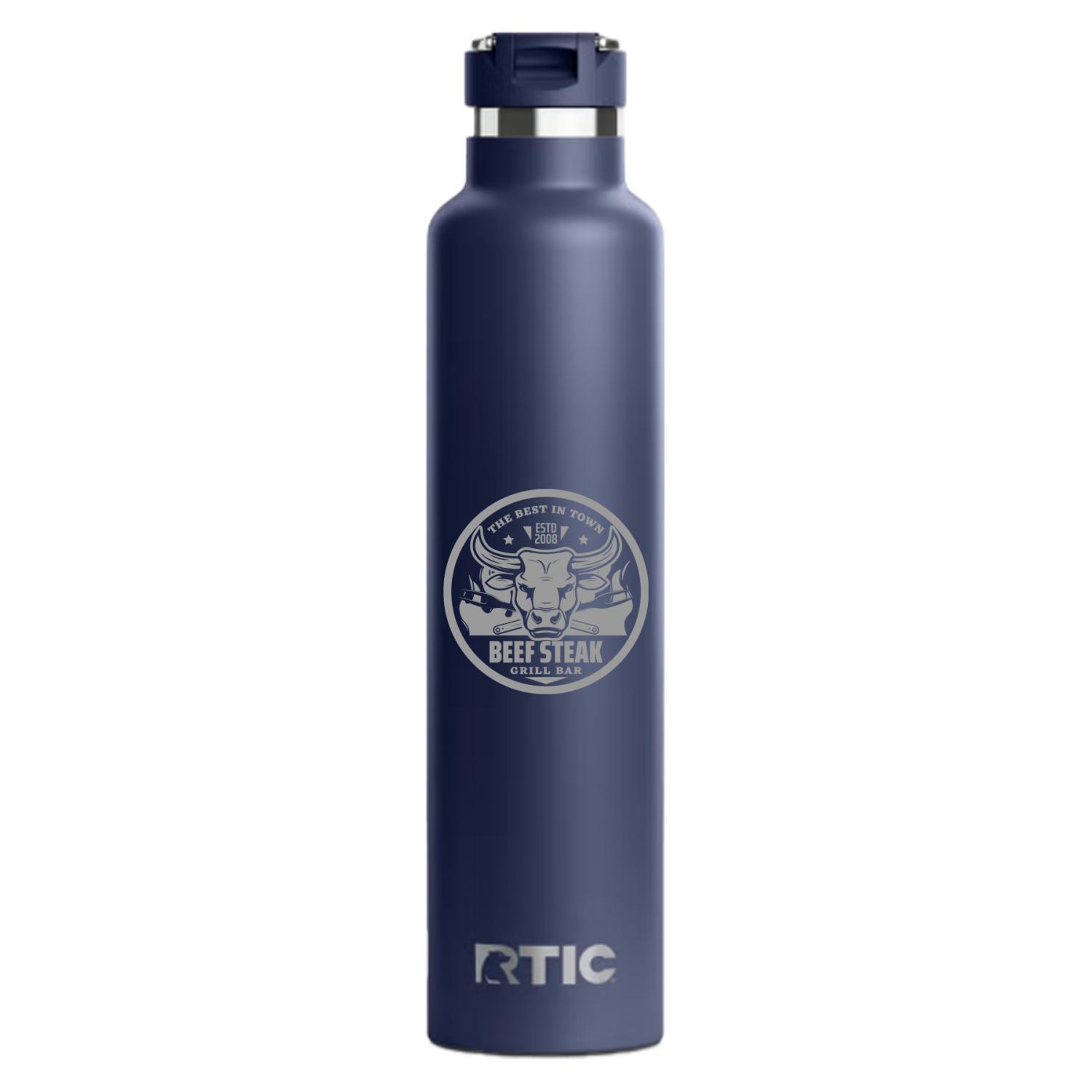 Elevate any occasion with the sleek RTIC 26oz water bottles. Crafted with double-wall insulated ceramic lining, this bottle maintains the temperature of your drink for hours without any metallic aftertaste. The journey bottle’s easy-sip straw lid is designed to flip up for sips, flip down for leak-proof transportation. Each bottle comes individually boxed for easy gifting. Laser engraved leaving a sleek silver imprint. Need less? Contact us for a quote on orders below the minimum quantity! 2 7/8″ W x 12 1/4″ H