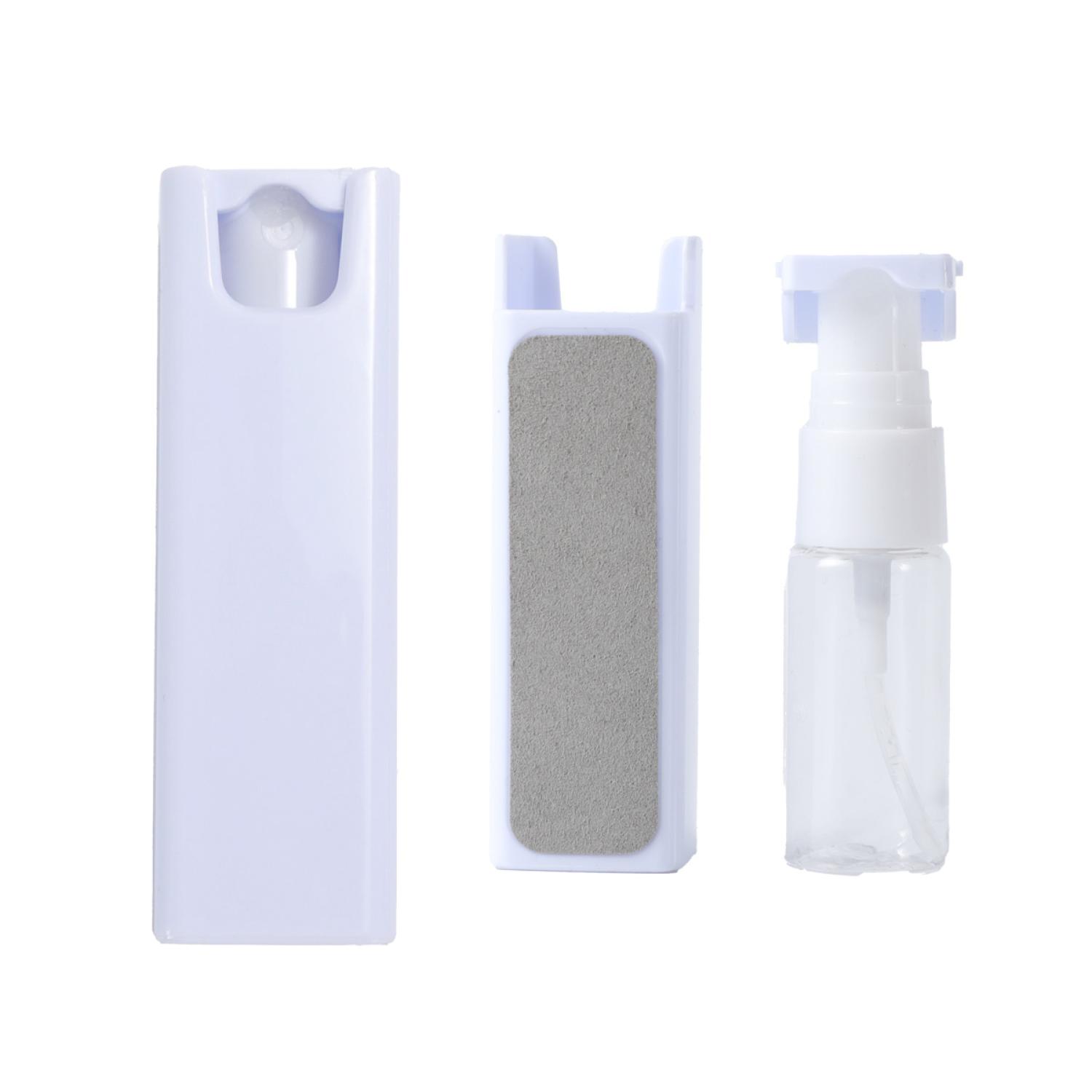 The Screen Cleaner Bottle offers a compact and convenient way to keep electronic screens clean on the go. Made from lightweight PS material, this portable spray bottle is designed for mobile phones, tablets, and other devices. Its refillable design allows users to add their own screen cleaner solution or water as needed. Cleaner solution is not included, and the bottle ships empty for user refill. Complies with Prop 65. 1″ L x 1″ W x 3.375″ H