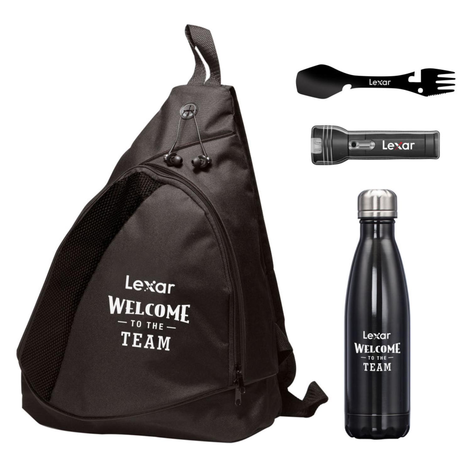 The Trailblazer Onboarding Set is designed for team members who thrive outdoors and value adventure-ready gear. It includes our durable Single Pin Bottle, versatile Camping Spork, compact Sling Bag, and a powerful Magnetic LED Flashlight — essentials for any excursion. Ideal for brands in outdoor recreation, energy, agriculture, construction, and environmental services, this set brings utility and style to every journey while aligning perfectly with rugged, on-the-go lifestyles.