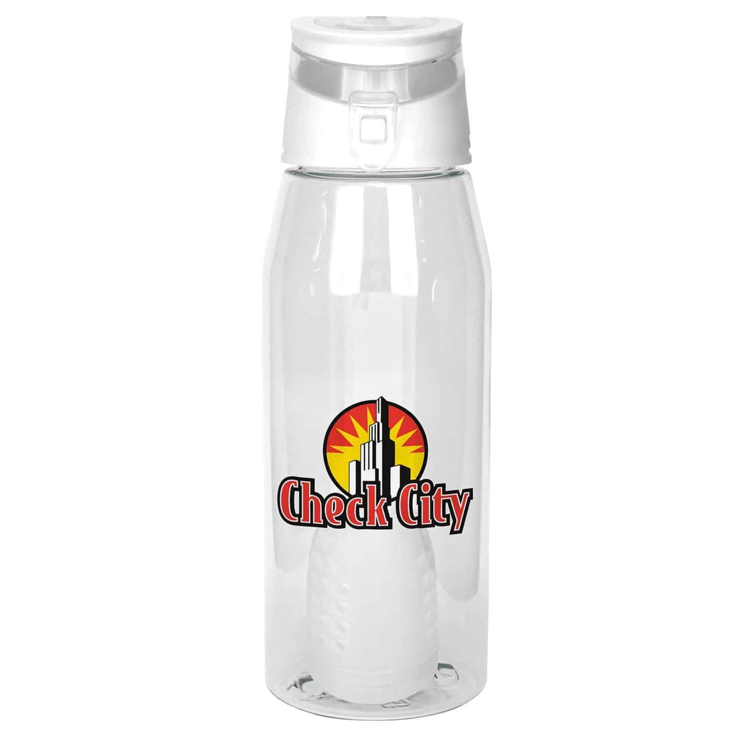 Introducing our innovative 32oz refillable water bottle featuring a floating infuser for a burst of flavor. This stylish bottle can hold up to 30 oz of water when infused with fruit, providing a refreshing and delicious hydration experience. The screw-on/flip-top lid is equipped with an easy-carry pop-up handle for convenience on-the-go. Rest assured, this bottle is BPA-free for your peace of mind. Please note, this bottle is not recommended for use in the dishwasher or microwave. Elevate your hydration game with our premium water bottle! Complies with Prop 65. 3.25″ D x 10.25″ H
