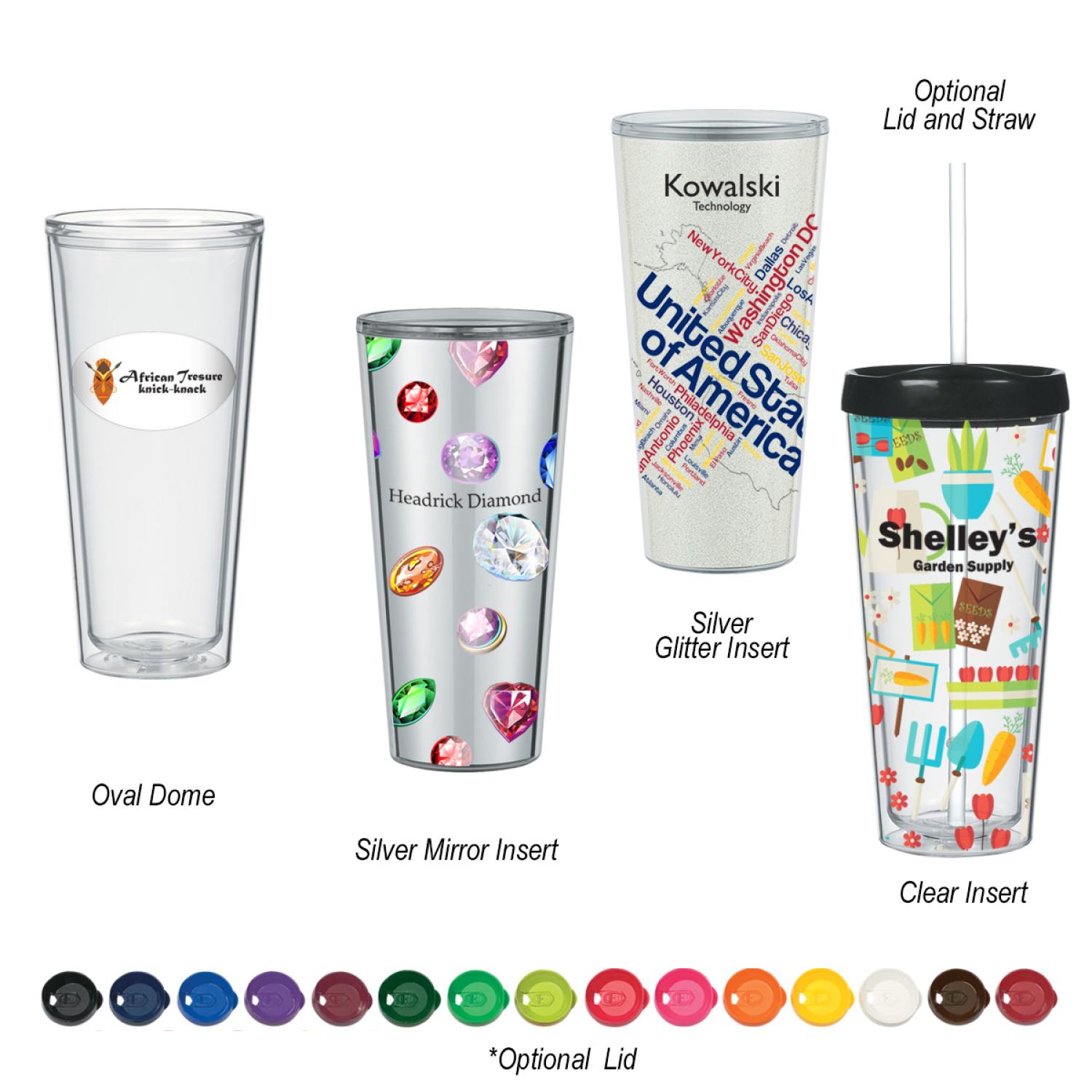 Durable Tritan™ Material. Impact And Shatter Resistant. Holds 22 Oz. Double Wall Construction For Insulation Of Hot Or Cold Liquids. Optional Lid And Matching Straw. Smooth Inner Wall. Complies with Prop 65. 7 5/8″ H