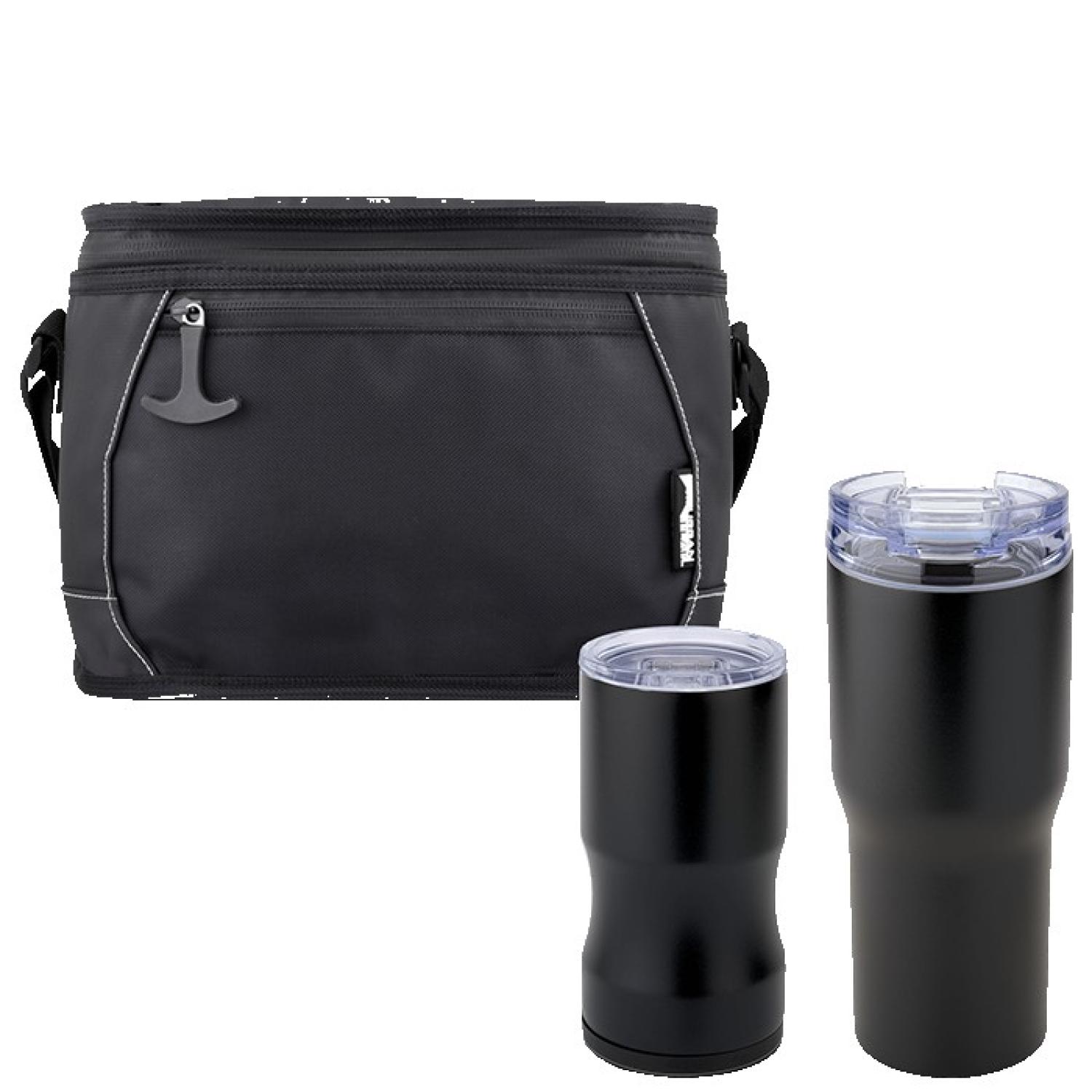 Drinkware constructed of Stainless Steel, double wall copper-lined vacuum insulation with powder-coat finish Features the Urban Peak 20 oz (SL234PR) and 3-in-1 Trail Insulator (SL233PR) packaged inside the Urban Peak Reserve 6 Can Cooler (CB165) 1-year limited warranty Cooler bag constructed of rugged waterproof 500D Tarpaulin SL233PR 3-in-1 and 20 oz SL234PR Patented. 7″ D x 11″ W x 7″ H