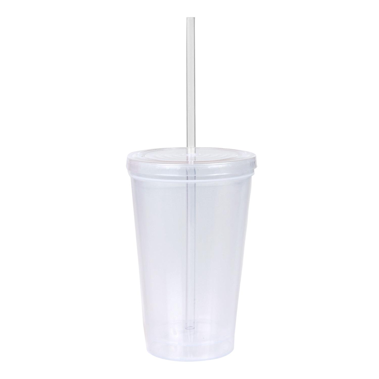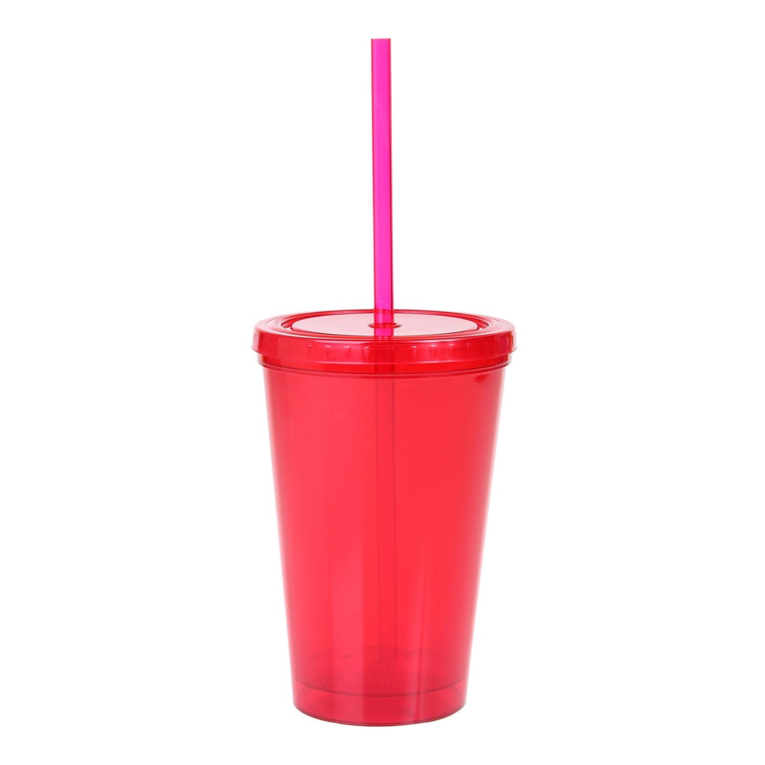Budget Plastic version of our MG850 – 16 oz. (473 mL) Double Wall Acrylic Tumbler. BPA-free reusable double wall tumbler made of PP plastic. Made in USA. Features matching color rigid straw included. Each straw includes plastic stopper to keep in place and measures approx. 9″l. Designed for use with cold and room-temperature beverages only. Features snap-on lid, made of Polypropylene Plastic, recyclable under symbol #5. Not microwave safe. Top rack dishwasher safe, however hand wash recommended for imprinted product. Fits most auto cup holders. 5.7500″ H x 3.7500″ Diameter
