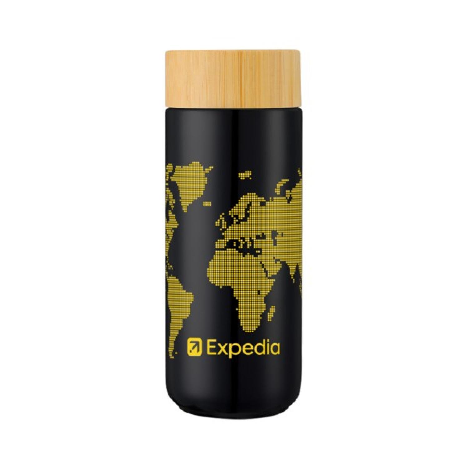 Some say bamboo helps clear negative energy. We say bamboo looks mighty fine as a laser engraved lid atop our Williston Double Wall Ceramic Mug! It’s good-vibes-only while sipping from this sturdy 10 Oz. mug. Double walls keep your zen intact and your beverage at desired temps. From screen printing to a seamless wrap, or even a full color digital print, your logo will become your demographics’ new favorite mantra. 2.75″ L x 2.75″ W x 7.48″ H