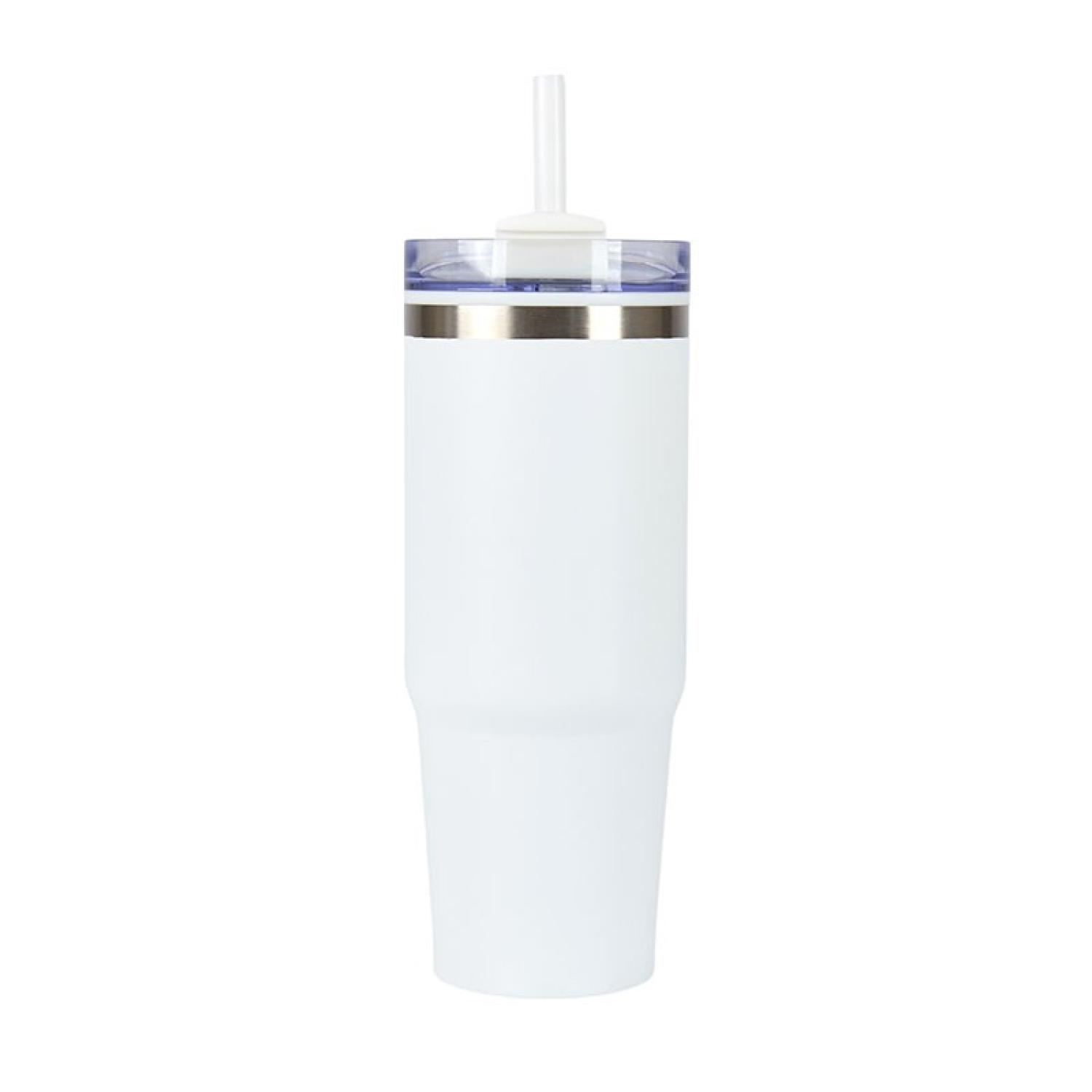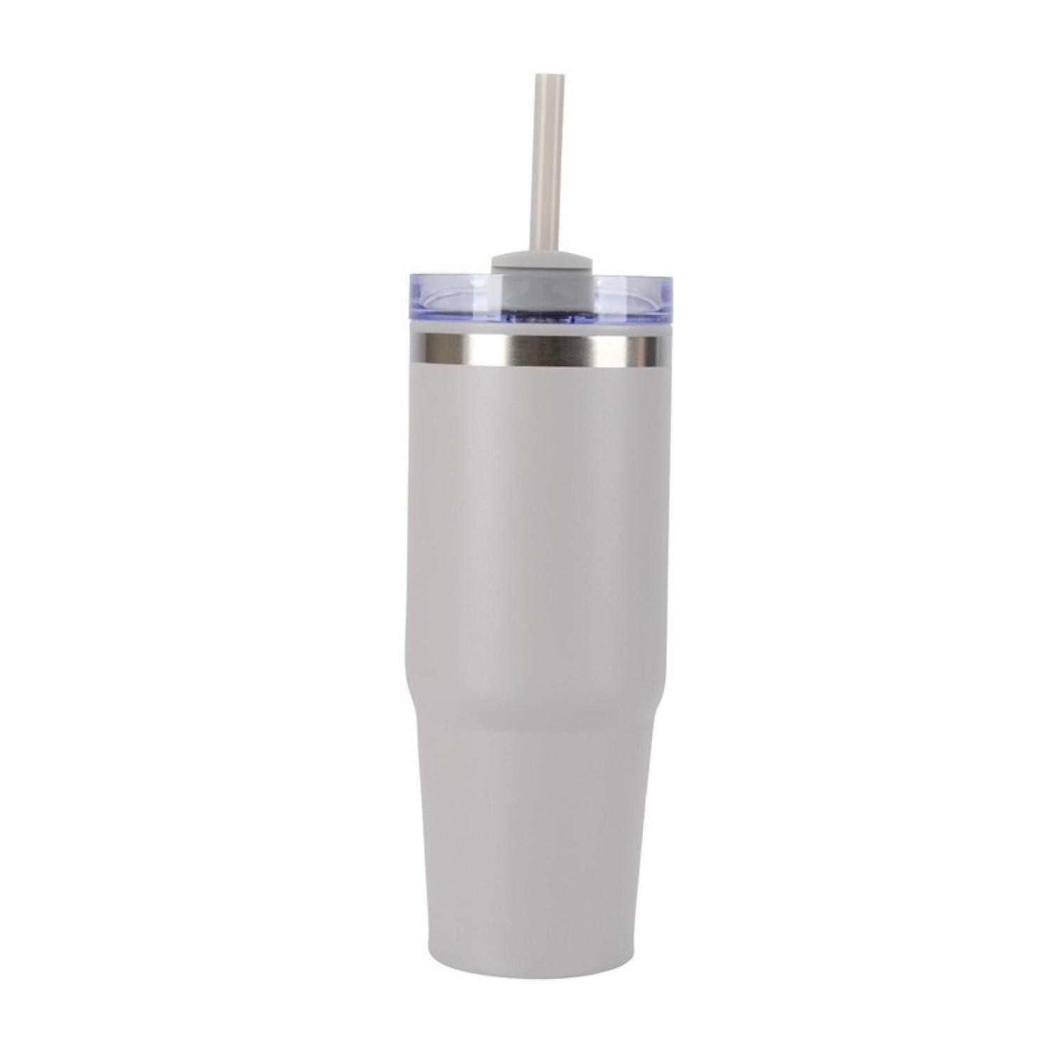 The Yesler 30 oz. Travel Tumbler is designed for both style and functionality, featuring a durable double-wall construction with a stainless steel outer and a polypropylene inner to maintain your beverages temperature. Its push-on clear lid with a rotator closure ensures a secure seal, while the included color-matching polypropylene straw adds convenience for on-the-go sipping. The sleek, powder-coated finish enhances durability and grip, and its tapered design fits most car cup holders for effortless travel. This tumbler is a reliable choice for everyday hydration. BPA Free and FDA compliant. Complies with Prop 65. 3 1/2″ W x 9 1/2″ H x 3 1/2″ D
